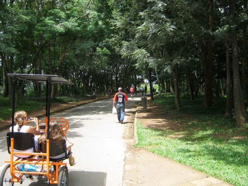 Passados alguns anos as arvores cresceram a sombra na ciclovia é bem agradável, da pra ficar de bobeira pedalando no parque sem se cansar.