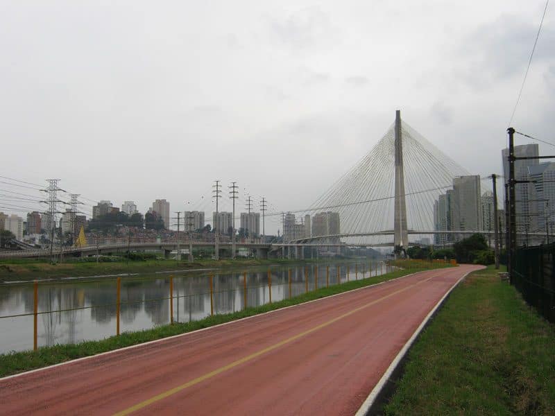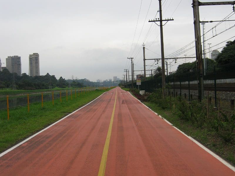 Hoje eu resolvi conhecer a Ciclovia do Rio Pinheiros, pedalei até a estação Vila Olímpia que é um dos acessos a ciclovia, no extremo da pista fica o outro acesso já em Interlagos.