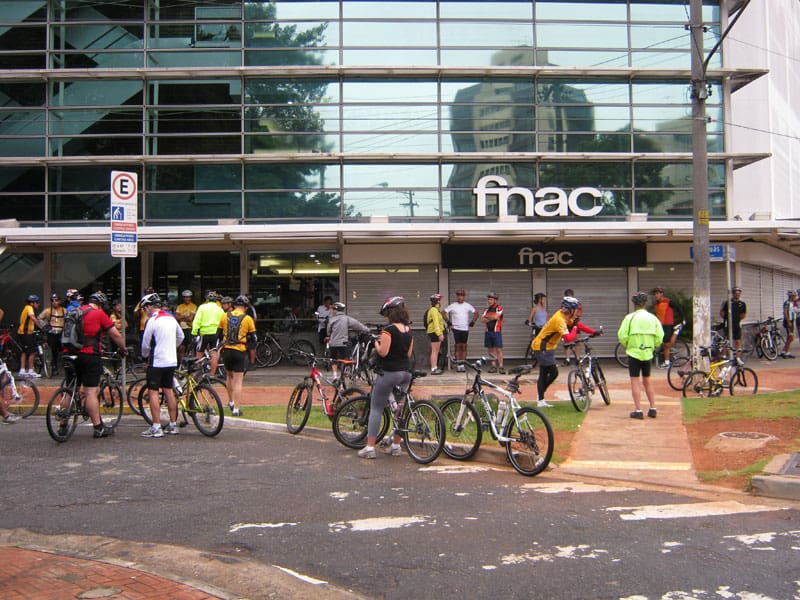 Quando chegamos perto da FNAC deu pra ver uma galera, bem pequena, mas pronta pro pedal.