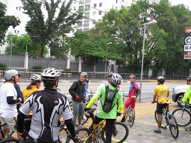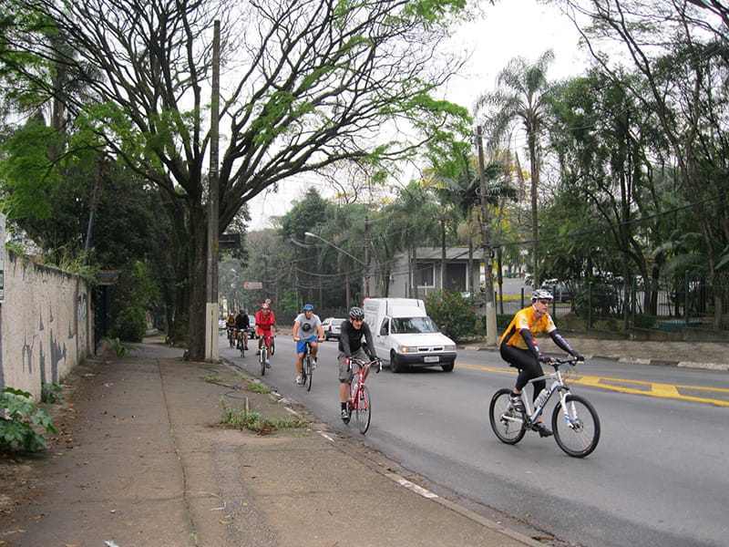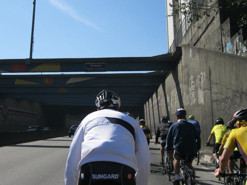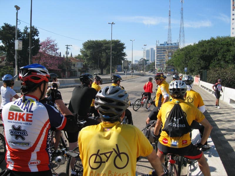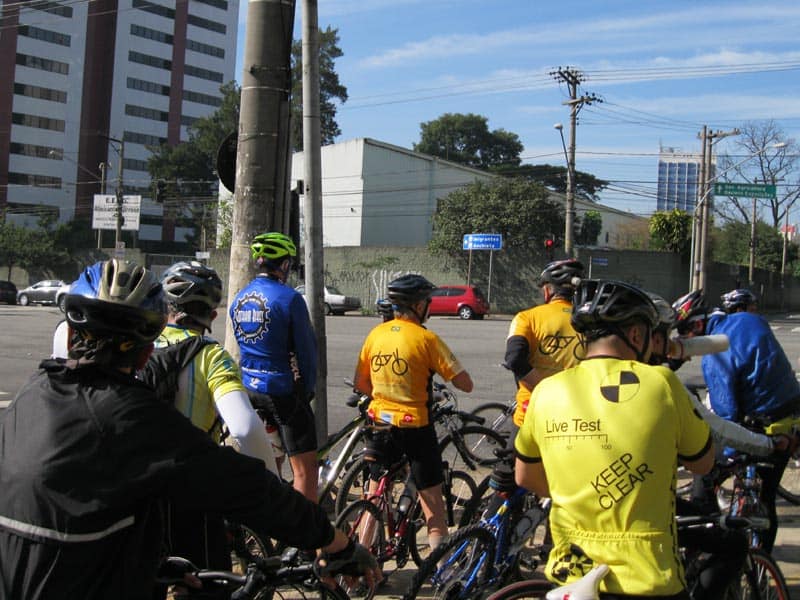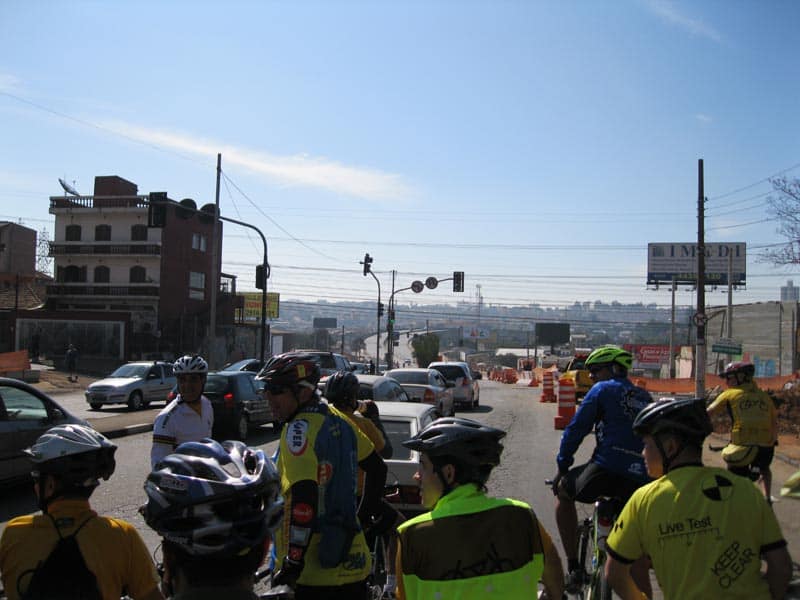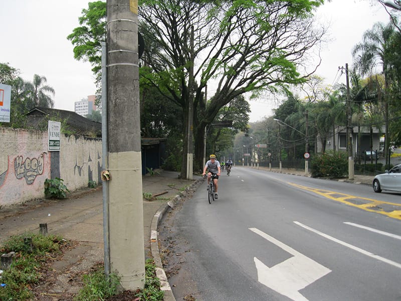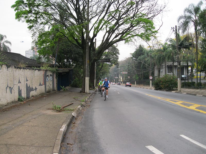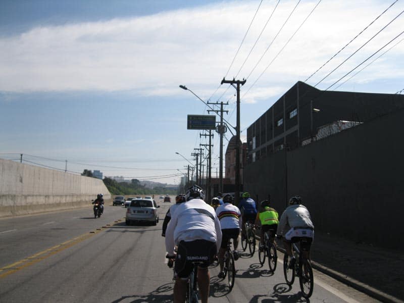 Bastante sol logo cedo, o Edson puxando o pedal, subimos a Inácio Pereira da Rocha, Vila Madalena, Heitor Penteado, Av. Dr. Arnaldo, Rua da Consolação, Viaduto Maria Paula, Parque Dom Pedro, Celso Garcia, andamos bastante na Mooca, Cambuci, Ipiranga, subimos a Lins de Vasconcelos inteira, Domingos de Moraes, acesso da 23 de maio, praça Buenos Aires, Rua Estados Unidos, Nove de Julho até a chegada na Padaria.