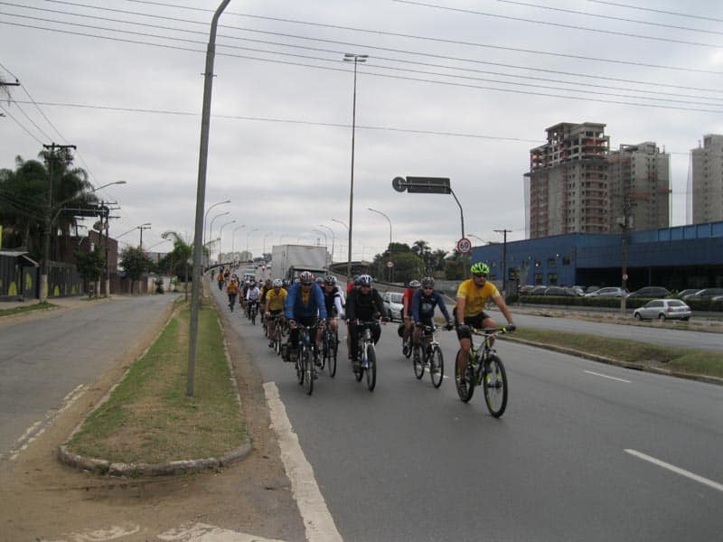 Já na saída o Edson disse que hoje ia ser forte, seguimos pela Groenlândia, República do Líbano, Indianópolis, passamos pelo Jabaquara em direção a Imigrantes, andamos pela Imigrantes até a saída de Diadema, logo depois do Frango Assado, em Diadema seguimos pela Eduardo Esquível, Corredor ABD e fomos embora por Santo André, São Caetano e São Bernardo, voltamos pelo Ipiranga, seguimos pela Ricardo Jafet até a Vergueiro ai subimos pela Chácara Klabin até a Domingos de Moraes, descemos pelo acesso a Vinte e Três de Maio entramos no Túnel Airton Senna depois Túnel do Tribunal de Justiça, continuamos pela Juscelino Kubischek até a Av. Brig. Faria Lima e paramos na Padaria, foram uns 50km num ritmo forte com poucas paradas, ninguém gritando pra manter a esquerda livre, ninguém ficando muito pra trás, em suma de todos os passeios que eu fiz até agora esse foi o melhor.