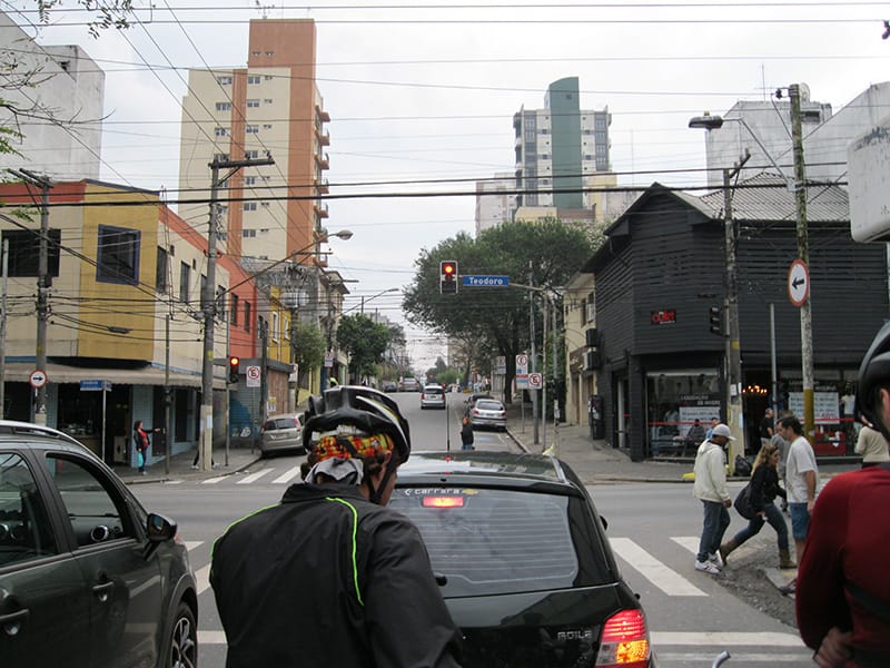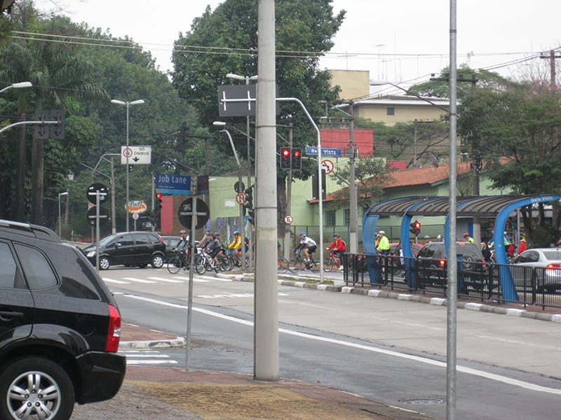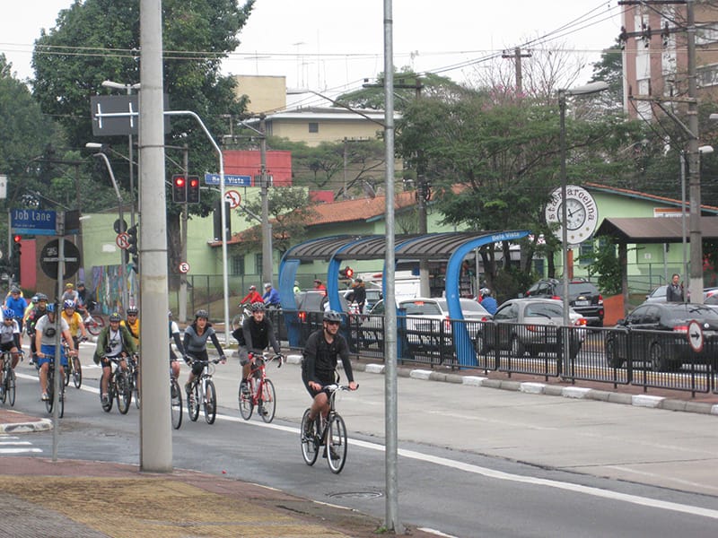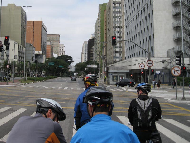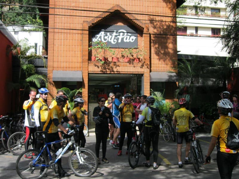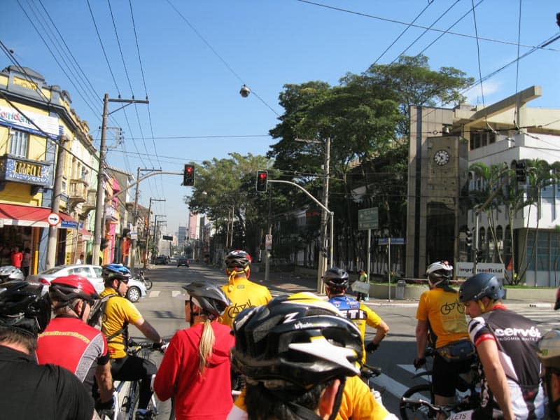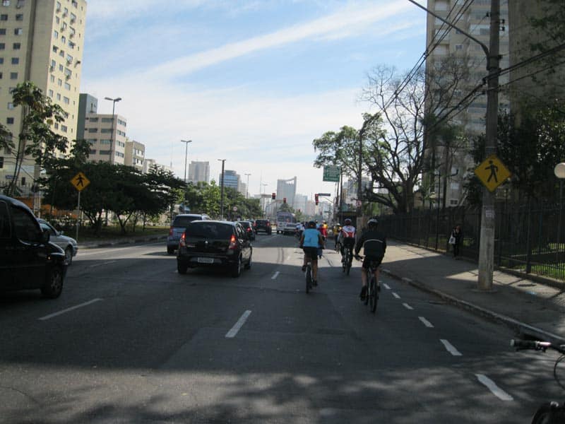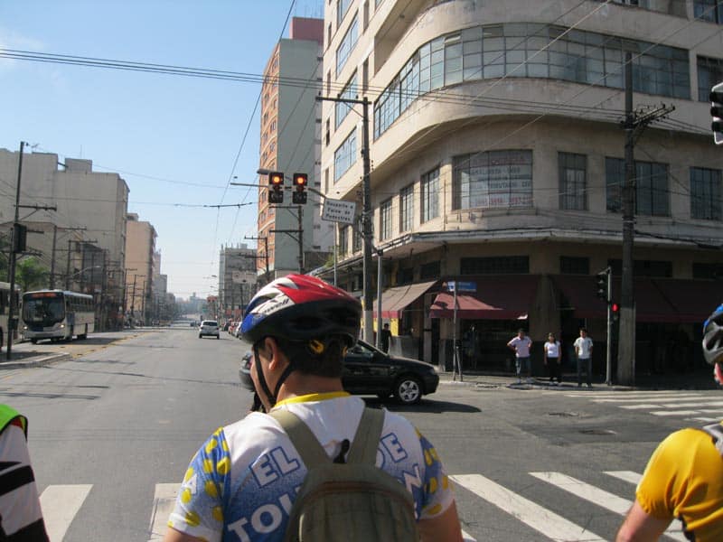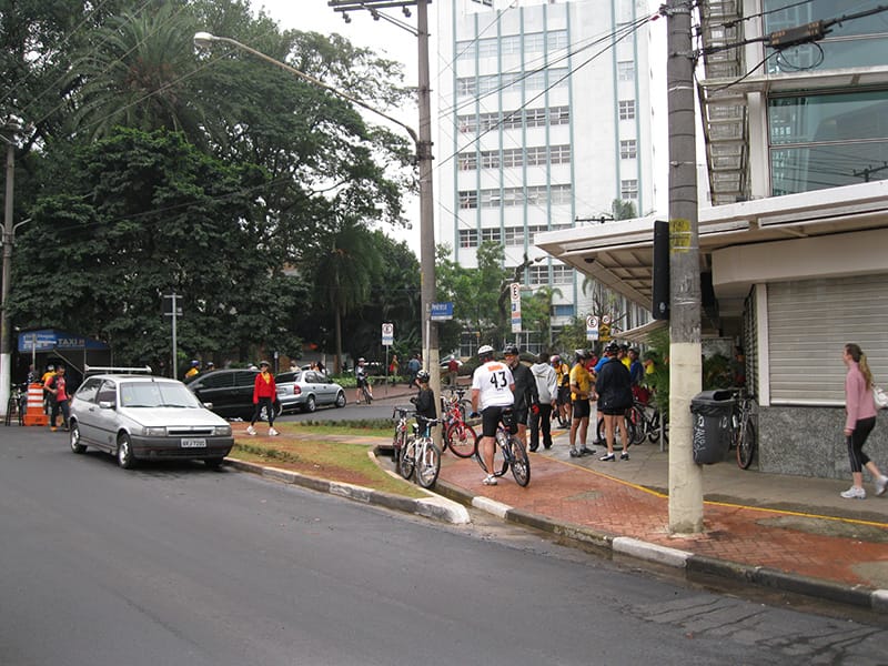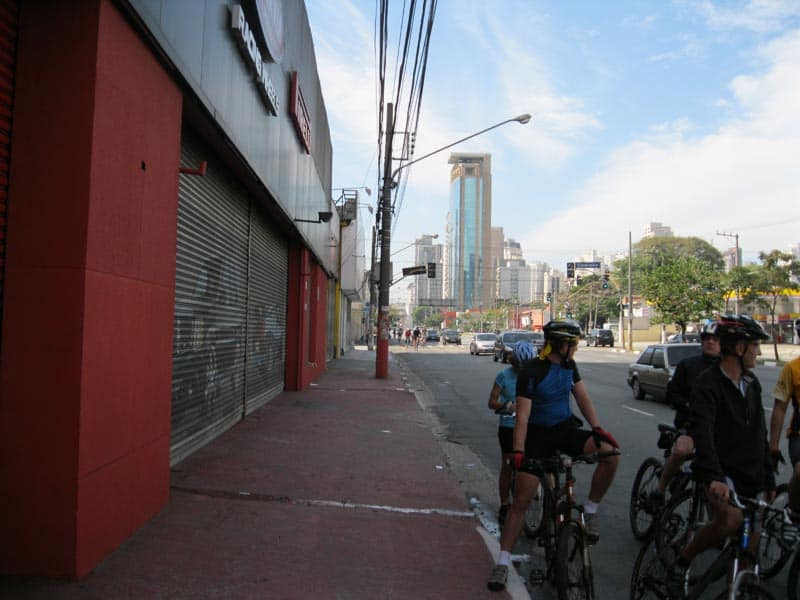 Bastante sol logo cedo, o Edson puxando o pedal, subimos a Inácio Pereira da Rocha, Vila Madalena, Heitor Penteado, Av. Dr. Arnaldo, Rua da Consolação, Viaduto Maria Paula, Parque Dom Pedro, Celso Garcia, andamos bastante na Mooca, Cambuci, Ipiranga, subimos a Lins de Vasconcelos inteira, Domingos de Moraes, acesso da 23 de maio, praça Buenos Aires, Rua Estados Unidos, Nove de Julho até a chegada na Padaria.
