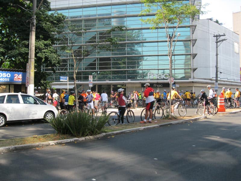 Na frente da FNAC uns 15 ciclistas, meia hora depois uns 30, 35 no máximo, nem o Olavo nem o Edson estavam por lá, o pessoal acho que do Pedal da Vila foi fazendo o trajeto, andamos pela Praça Panamericana, Vila Leopoldina, Lapa, Pompéia, Centro, Sta Cecília, Higienópolis, Pacaembu e Vila Madalena, o Pedal terminou na Feira da Vila Madalena, ia rolar sorteio de equipamentos e bikes, mas tinha que voltar pra casa então nem entrei na feira.