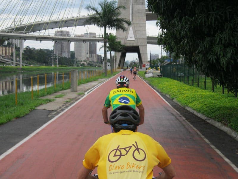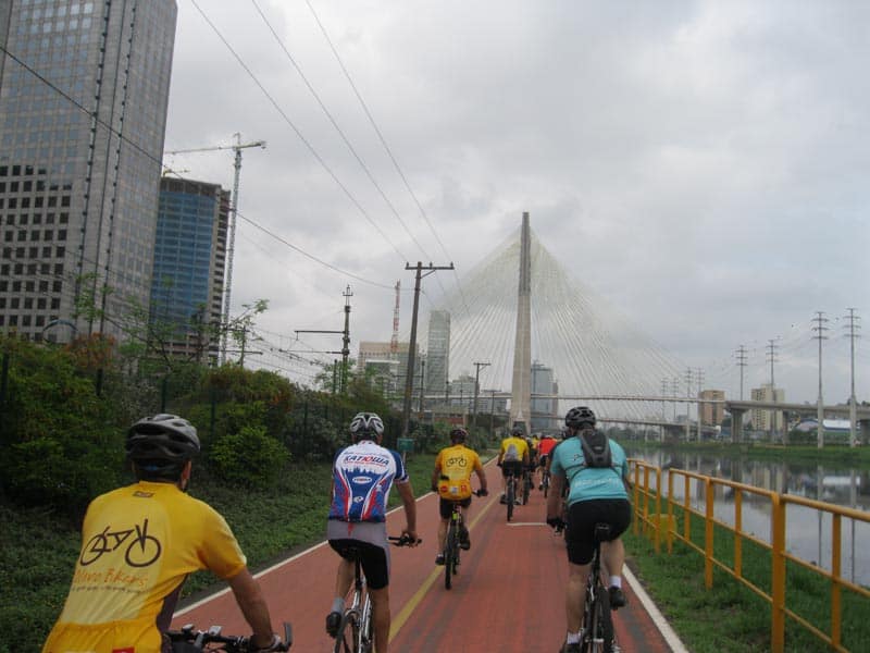 O Olavo em pessoa guiou a galera até a Ciclovia do Rio Pinheiros, passeio light com bastante crianças, mais que o normal.