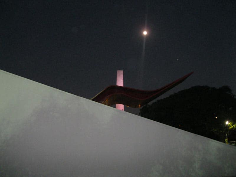 Hoje pedalei 36.33 km no Parque do Ibirapuera, o fim de tarde estava muito bonito, a Lua em destaque num céu bem limpo, sem vento a lagoa parecia um espelho gigante.