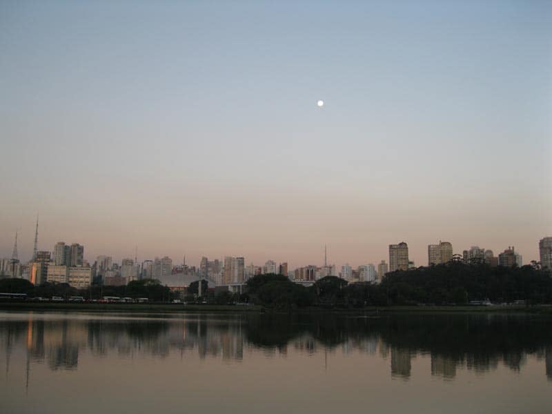 Hoje pedalei 36.33 km no Parque do Ibirapuera, o fim de tarde estava muito bonito, a Lua em destaque num céu bem limpo, sem vento a lagoa parecia um espelho gigante.