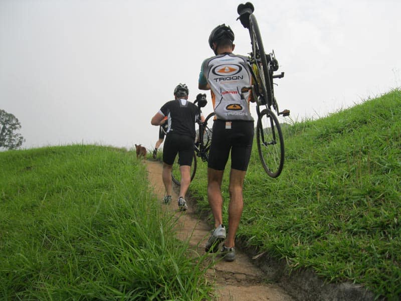 Em todo o percurso buracos, areia, pedras, cascalho, água, guias altas de entradas de prédios, tampas de bueiro de metal, enfim tem de tudo.
