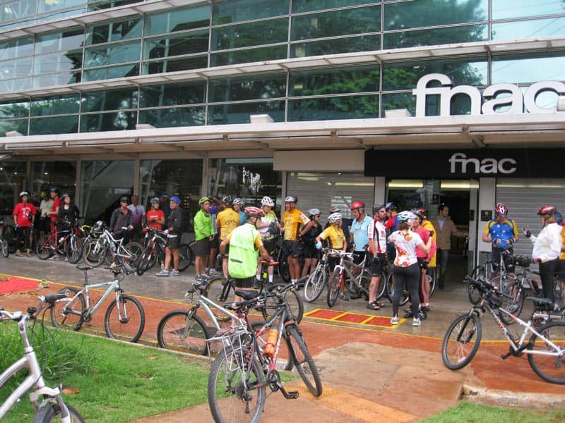 Pedalei até a FNAC e a galera estava embaixo do toldo da loja esperando o ínicio do pedal.