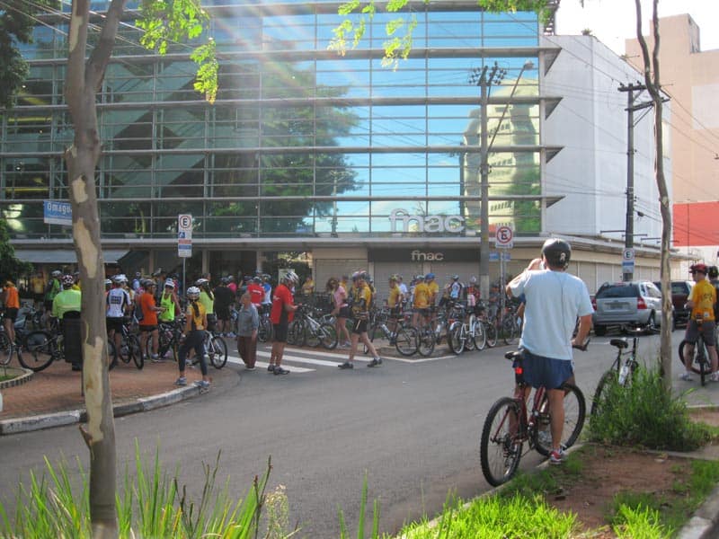 Pedalei até a FNAC e a galera estava embaixo do toldo da loja esperando o ínicio do pedal.