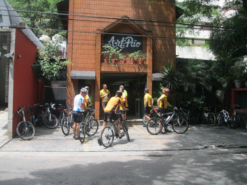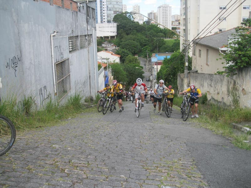 Bastante movimentação na pracinha da FNAC hoje de manhã, o pedal se dividiu em dois grupos um liderado pelo Olavo e o outro pelo Joselito. Eu estava extremamente cansado e a primeira subida foi logo a da Rua Salto Grande na Perdizes, no meio da subida já estava patinando nos paralelipípedos, empurrei até o final e fiquei esperando o resto da galera reagrupar, em seguida subimos o tobogã da Av. Pompéia e um trecho da Av. Prof Alfonso Bovero. Descemos pelas Perdizes e fizemos uma pausa na Praça Irmãos Karman, durante a pausa uma parte do grupo resolveu seguir pela Sumaré e pedalar até o Horto Florestal, ao invés de subir pelas perdizes de volta. Eu acompanhei esse grupo até o Horto. Depois na volta eu o Serginho e o Tatá ainda pedalamos até a Padaria Art-Pão pra encontrar a Galera.