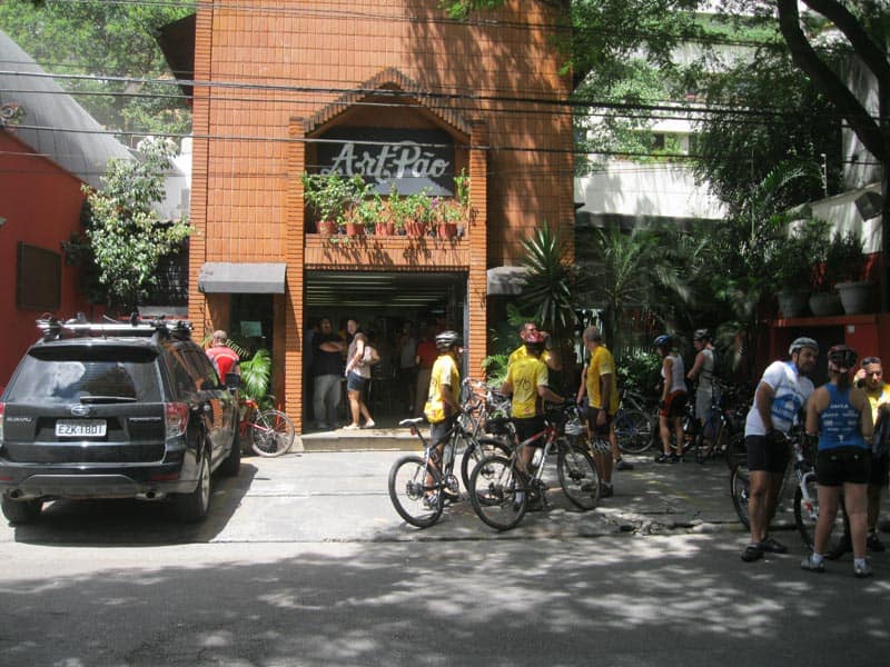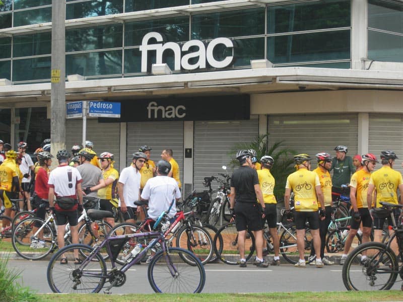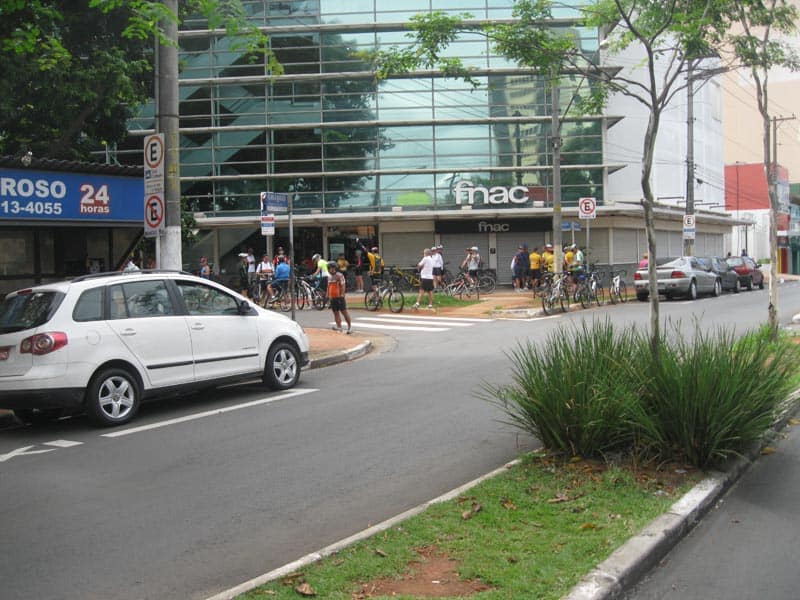 Bastante movimentação na pracinha da FNAC hoje de manhã, o pedal se dividiu em dois grupos um liderado pelo Olavo e o outro pelo Joselito. Eu estava extremamente cansado e a primeira subida foi logo a da Rua Salto Grande na Perdizes, no meio da subida já estava patinando nos paralelipípedos, empurrei até o final e fiquei esperando o resto da galera reagrupar, em seguida subimos o tobogã da Av. Pompéia e um trecho da Av. Prof Alfonso Bovero. Descemos pelas Perdizes e fizemos uma pausa na Praça Irmãos Karman, durante a pausa uma parte do grupo resolveu seguir pela Sumaré e pedalar até o Horto Florestal, ao invés de subir pelas perdizes de volta. Eu acompanhei esse grupo até o Horto. Depois na volta eu o Serginho e o Tatá ainda pedalamos até a Padaria Art-Pão pra encontrar a Galera.