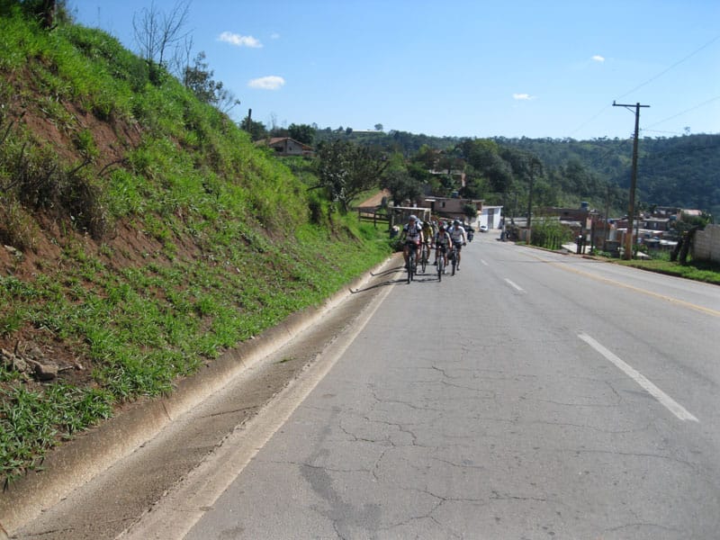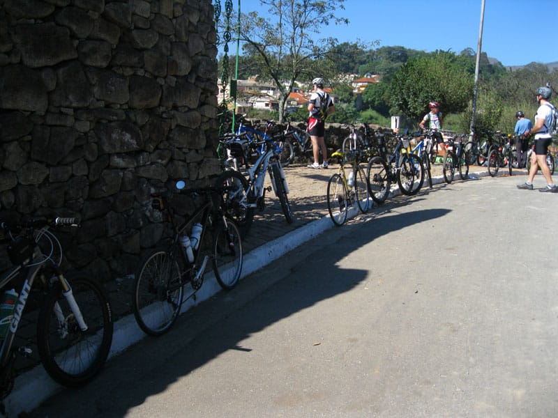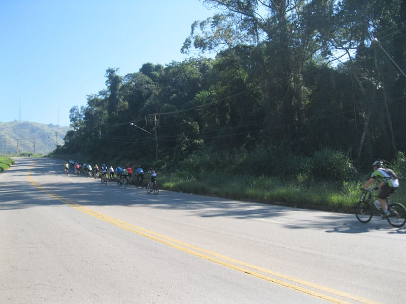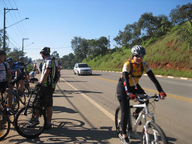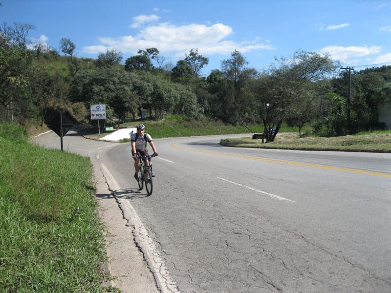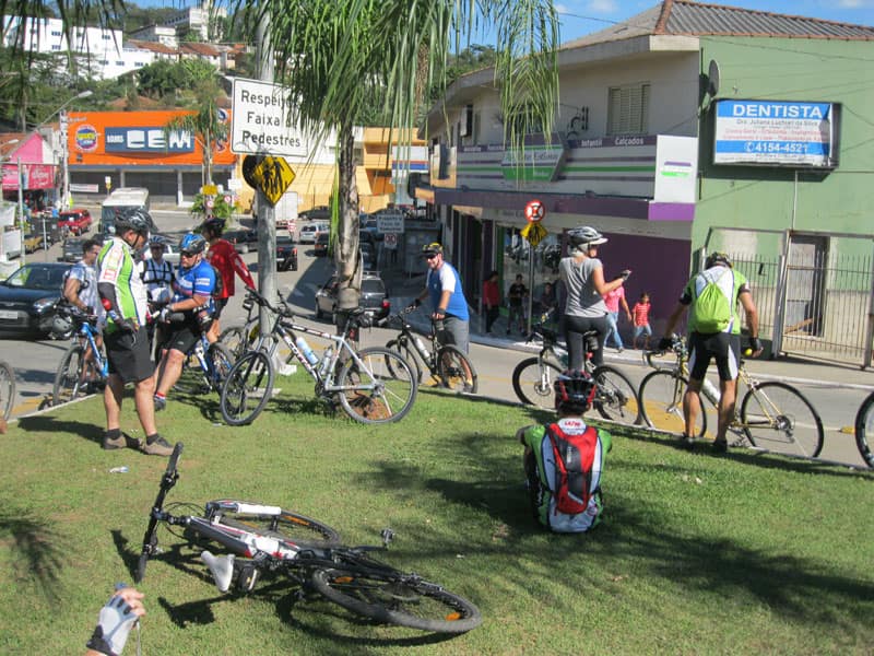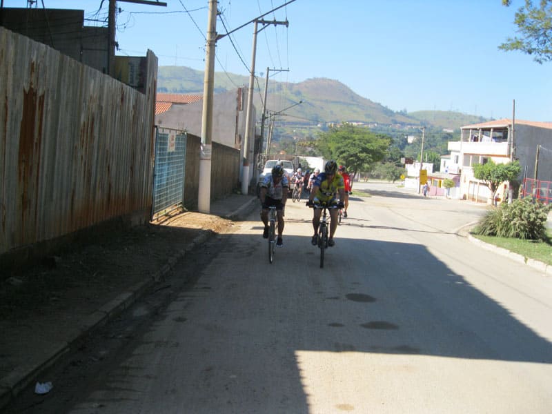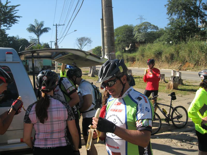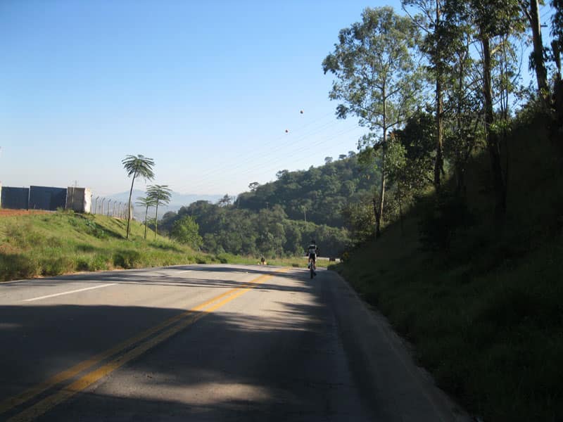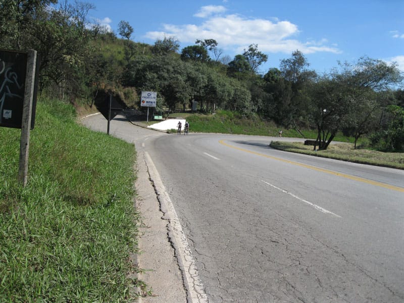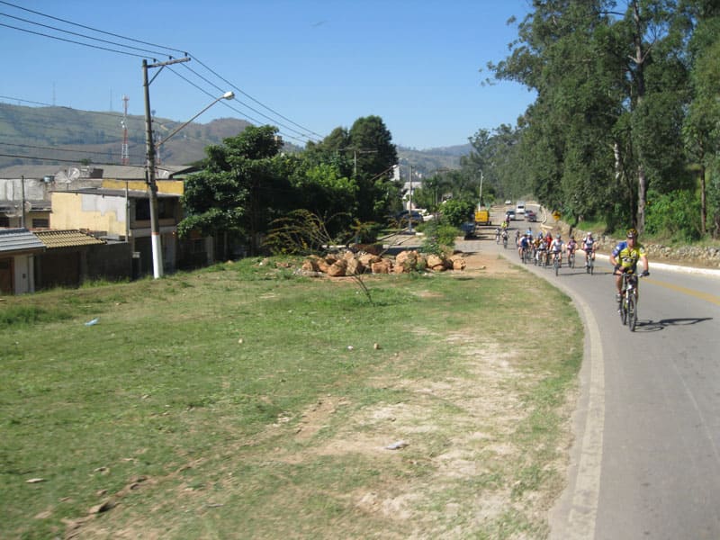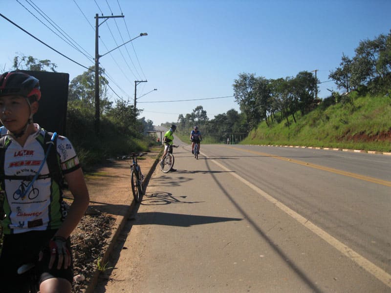Fui pela Corifeu – Autonomistas – Romeiros saindo do Morumbi foi bem rápido, cheguei muito cedo e hoje era dia do XI Encontro Antigomobilismo de Santana de Parnaíba um evento da Federação Brasileira de Veiculos Antigos (FBVA) então o centro histórico estava com acesso restrito e tive que estacionar perto da Estrada dos Romeiros mesmo. Rodei um pouco pelo Largo da Matriz aguardando a chegada da galera, o Flávio que costuma pedalar com o Olavo de Sábado chegou logo em seguida. Quando a caravana chegou foi impedida de estacionar nas proximidades e indicaram um terreno da prefeitura a uns 500 metros do monumento como local seguro para estacionar, eu e o Flávio seguimos de bike para lá e em poucos minutos estavamos pedalando pela Estrada dos Romeiros com o pessoal.
