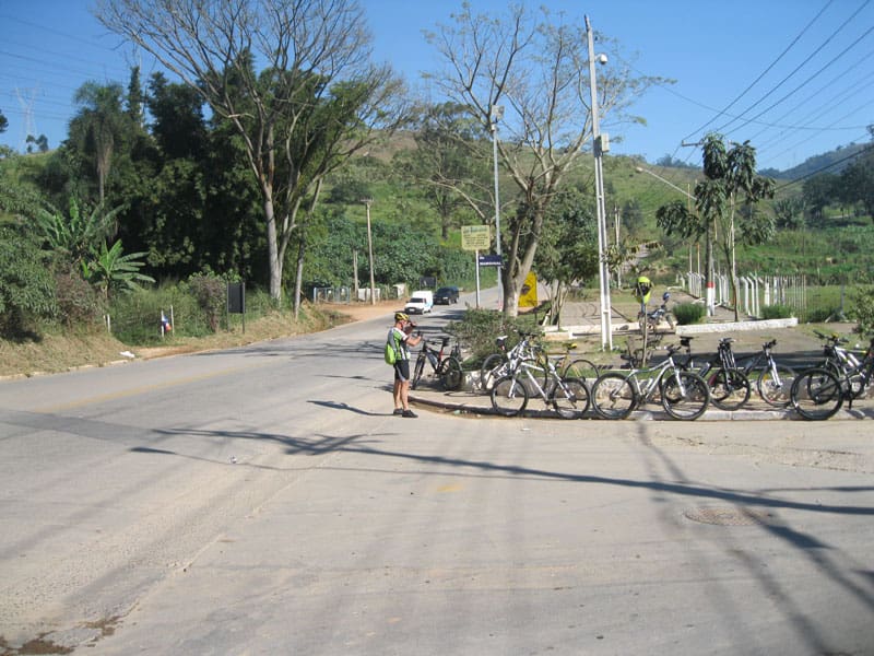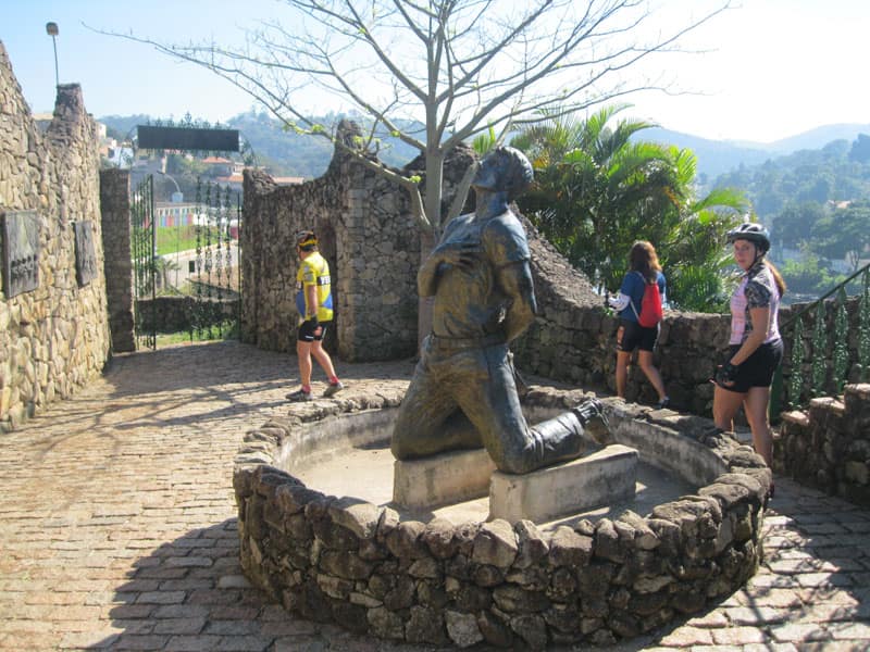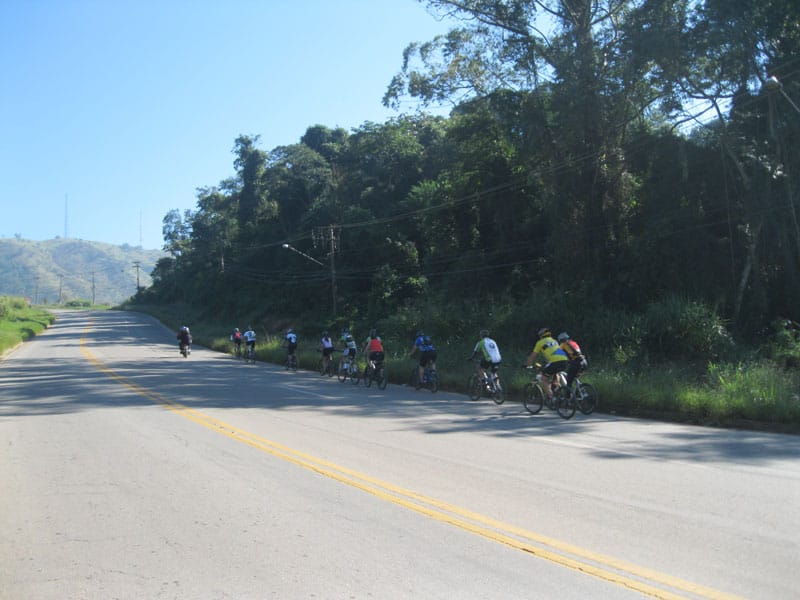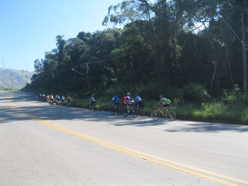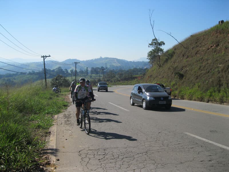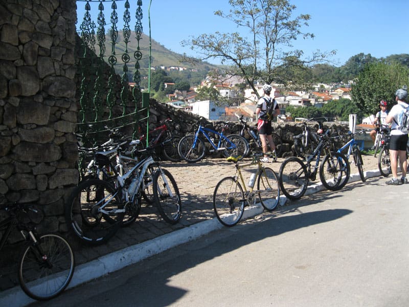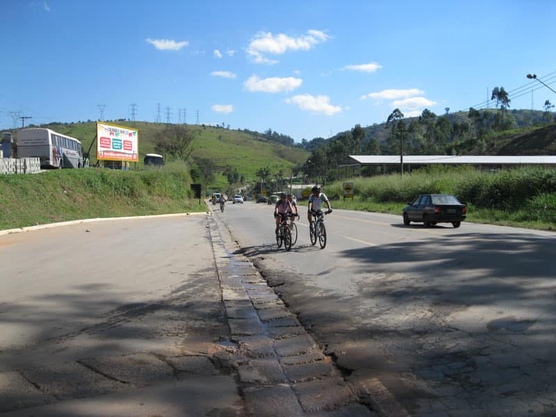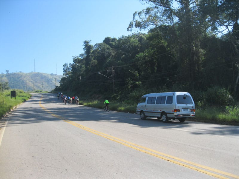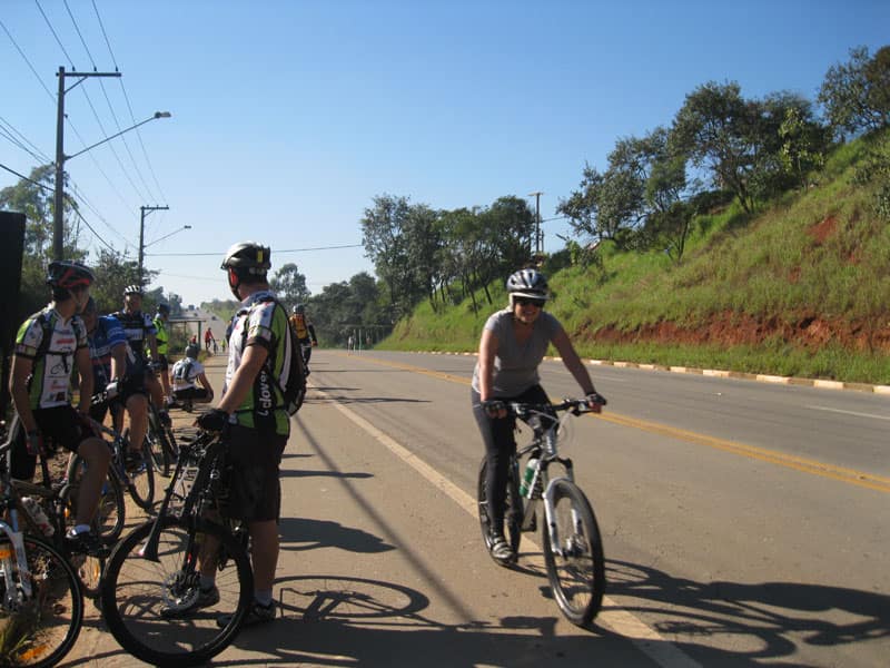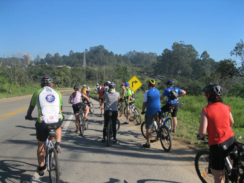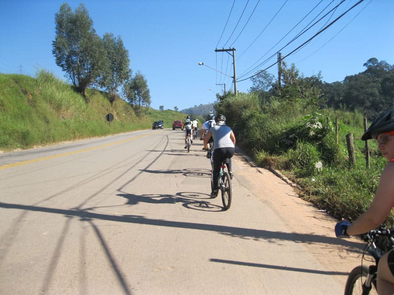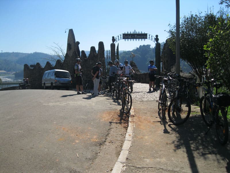 Fui pela Corifeu – Autonomistas – Romeiros saindo do Morumbi foi bem rápido, cheguei muito cedo e hoje era dia do XI Encontro Antigomobilismo de Santana de Parnaíba um evento da Federação Brasileira de Veiculos Antigos (FBVA) então o centro histórico estava com acesso restrito e tive que estacionar perto da Estrada dos Romeiros mesmo. Rodei um pouco pelo Largo da Matriz aguardando a chegada da galera, o Flávio que costuma pedalar com o Olavo de Sábado chegou logo em seguida. Quando a caravana chegou foi impedida de estacionar nas proximidades e indicaram um terreno da prefeitura a uns 500 metros do monumento como local seguro para estacionar, eu e o Flávio seguimos de bike para lá e em poucos minutos estavamos pedalando pela Estrada dos Romeiros com o pessoal.