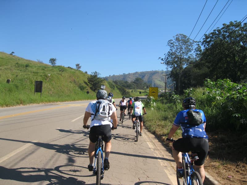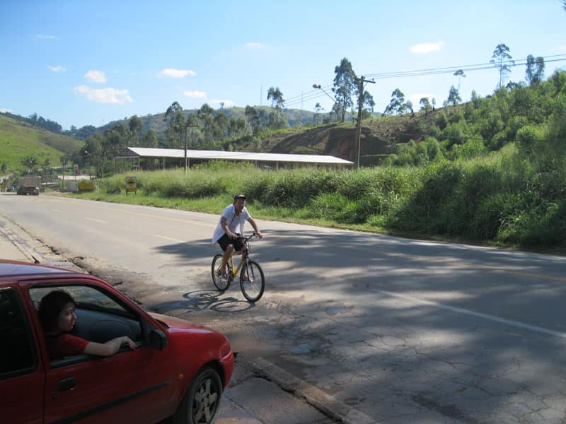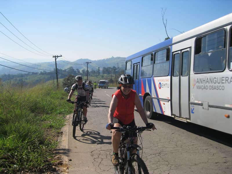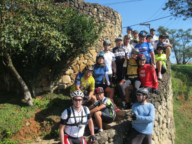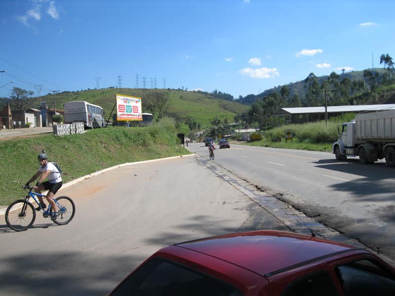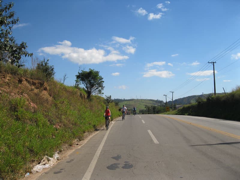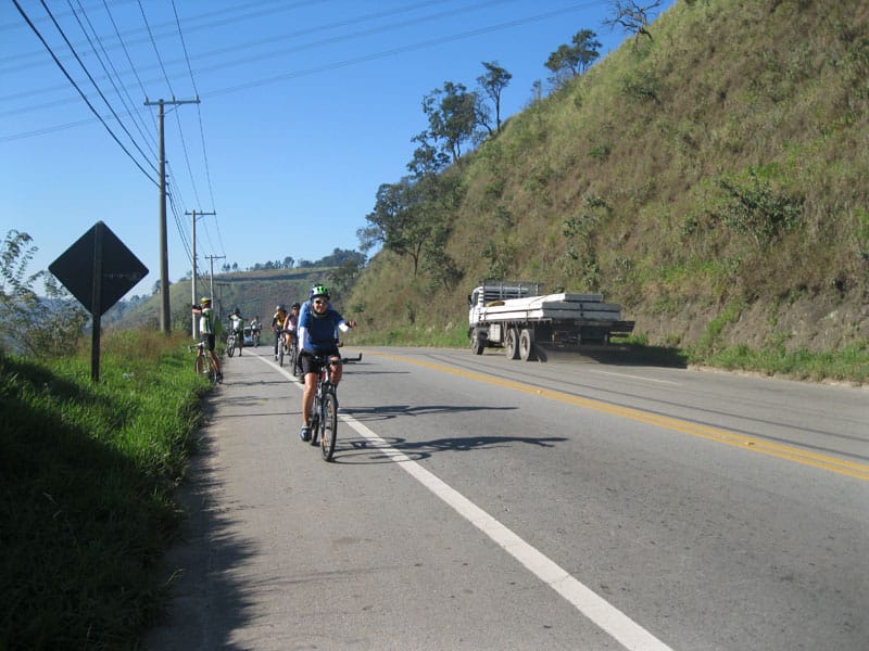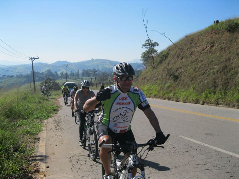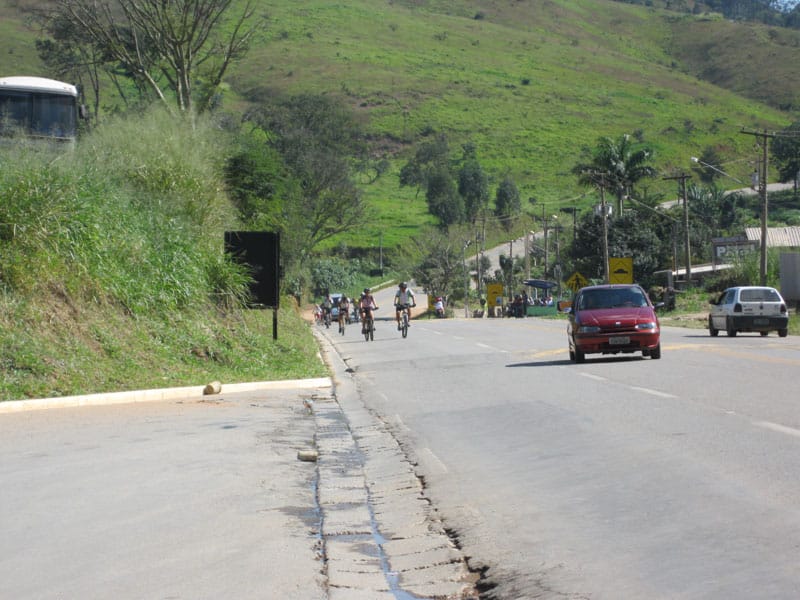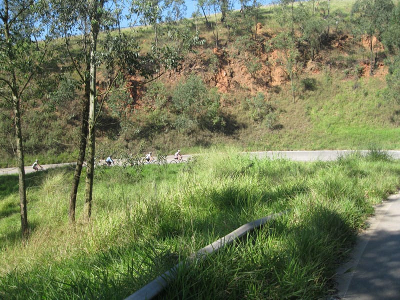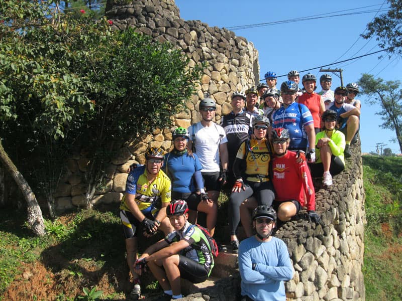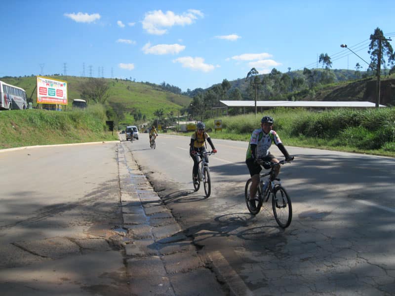 Fui pela Corifeu – Autonomistas – Romeiros saindo do Morumbi foi bem rápido, cheguei muito cedo e hoje era dia do XI Encontro Antigomobilismo de Santana de Parnaíba um evento da Federação Brasileira de Veiculos Antigos (FBVA) então o centro histórico estava com acesso restrito e tive que estacionar perto da Estrada dos Romeiros mesmo. Rodei um pouco pelo Largo da Matriz aguardando a chegada da galera, o Flávio que costuma pedalar com o Olavo de Sábado chegou logo em seguida. Quando a caravana chegou foi impedida de estacionar nas proximidades e indicaram um terreno da prefeitura a uns 500 metros do monumento como local seguro para estacionar, eu e o Flávio seguimos de bike para lá e em poucos minutos estavamos pedalando pela Estrada dos Romeiros com o pessoal.