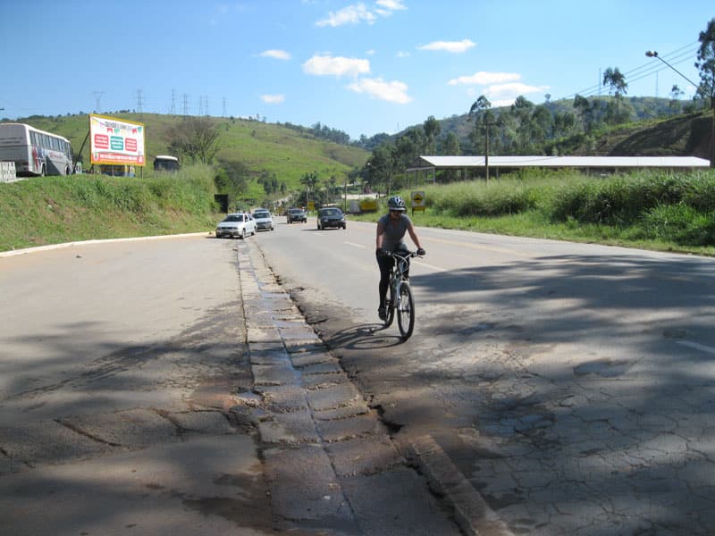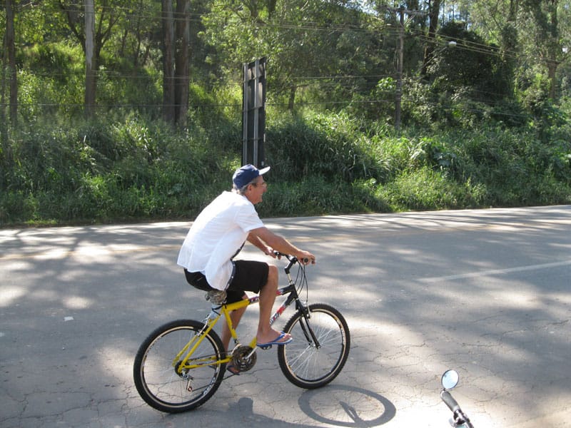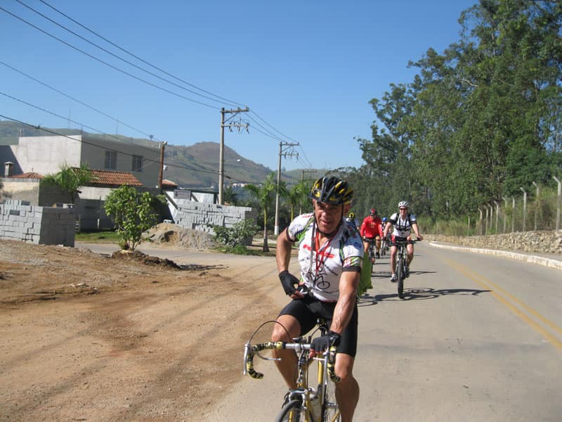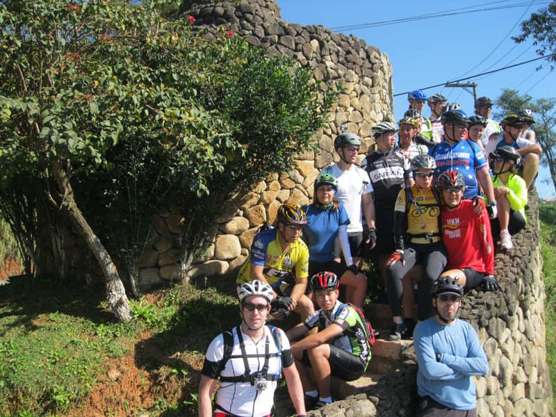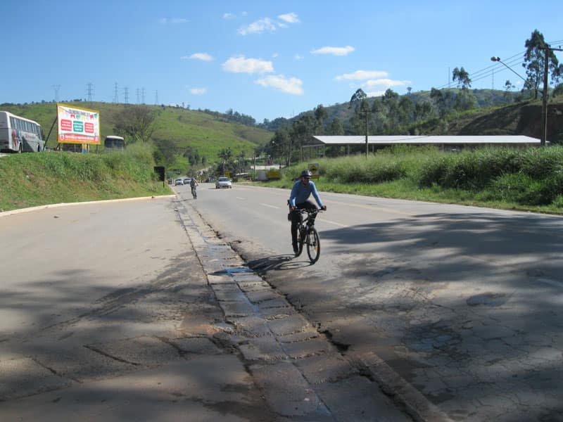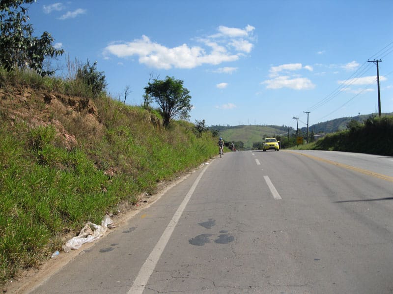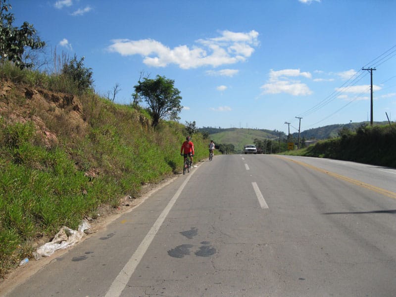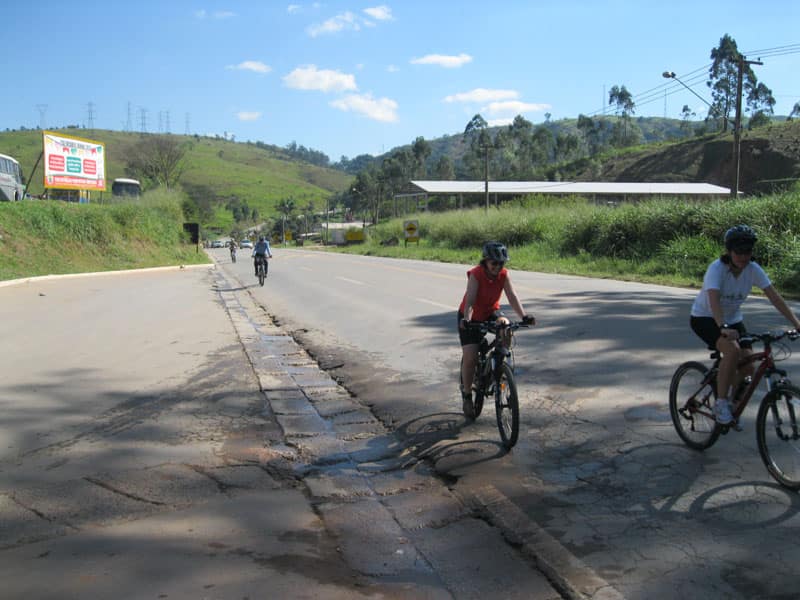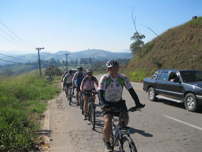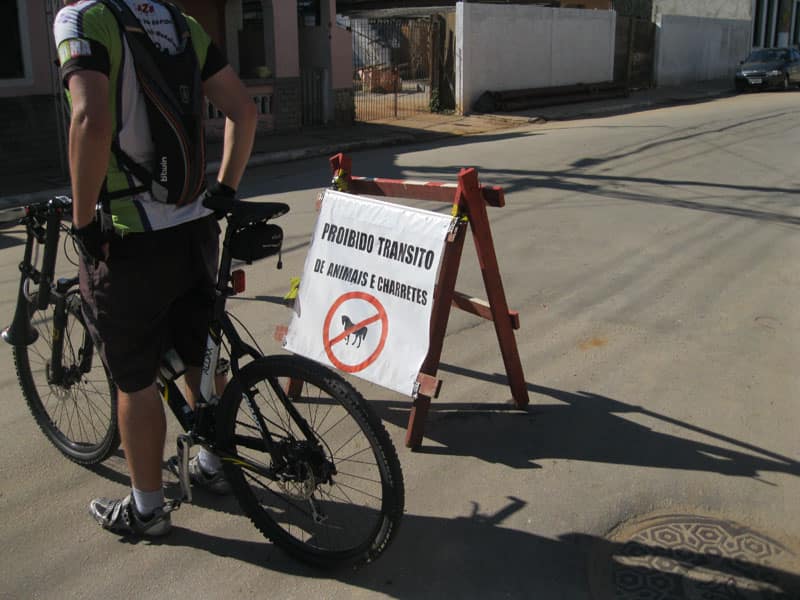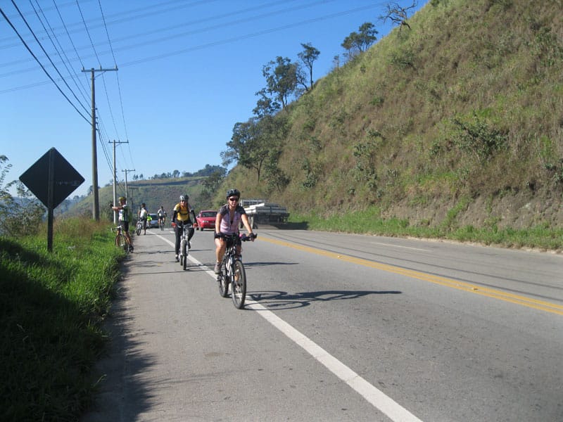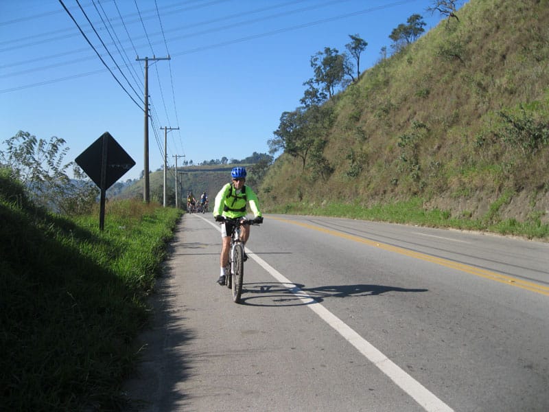 Fui pela Corifeu – Autonomistas – Romeiros saindo do Morumbi foi bem rápido, cheguei muito cedo e hoje era dia do XI Encontro Antigomobilismo de Santana de Parnaíba um evento da Federação Brasileira de Veiculos Antigos (FBVA) então o centro histórico estava com acesso restrito e tive que estacionar perto da Estrada dos Romeiros mesmo. Rodei um pouco pelo Largo da Matriz aguardando a chegada da galera, o Flávio que costuma pedalar com o Olavo de Sábado chegou logo em seguida. Quando a caravana chegou foi impedida de estacionar nas proximidades e indicaram um terreno da prefeitura a uns 500 metros do monumento como local seguro para estacionar, eu e o Flávio seguimos de bike para lá e em poucos minutos estavamos pedalando pela Estrada dos Romeiros com o pessoal.