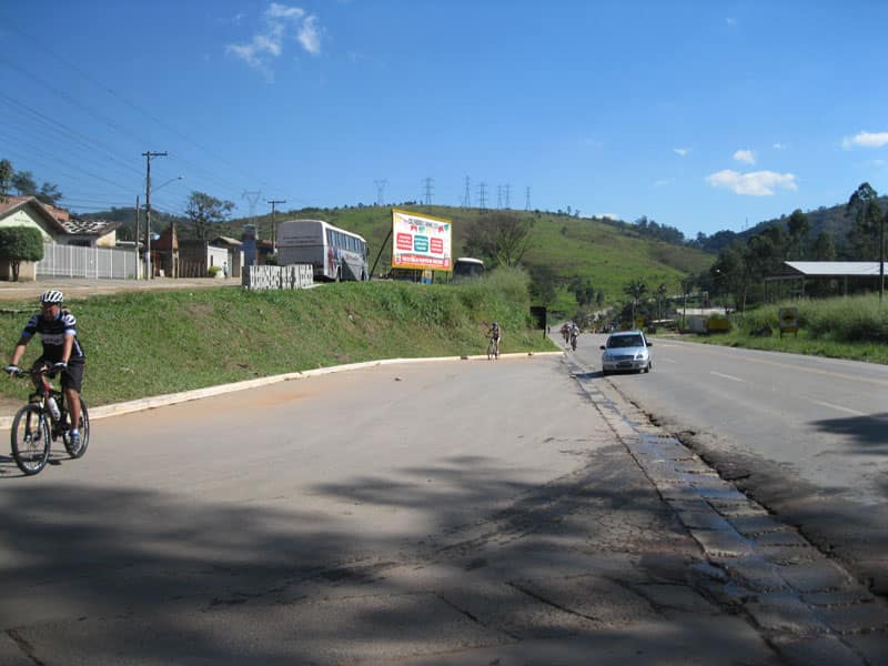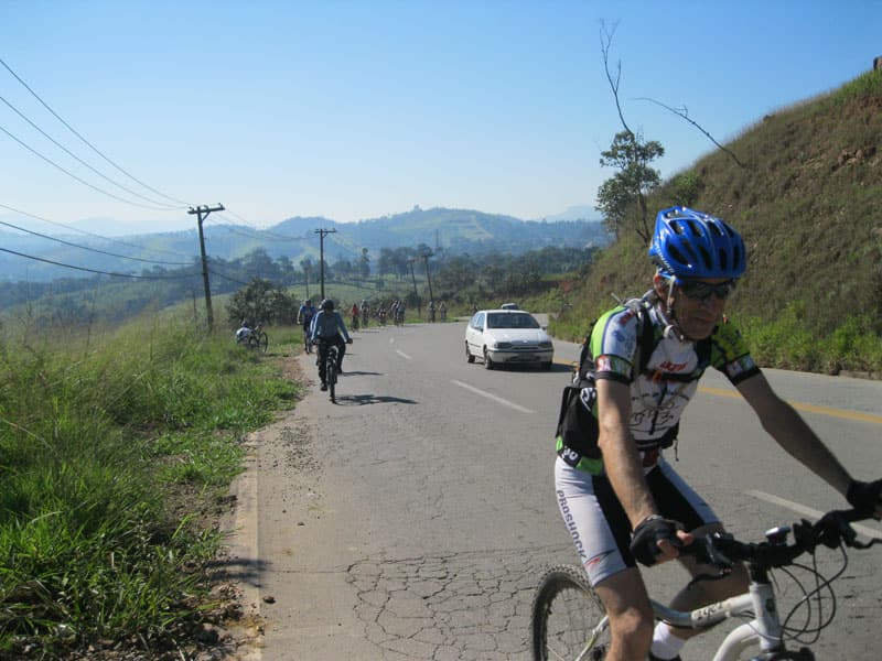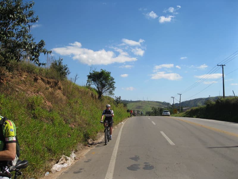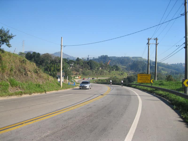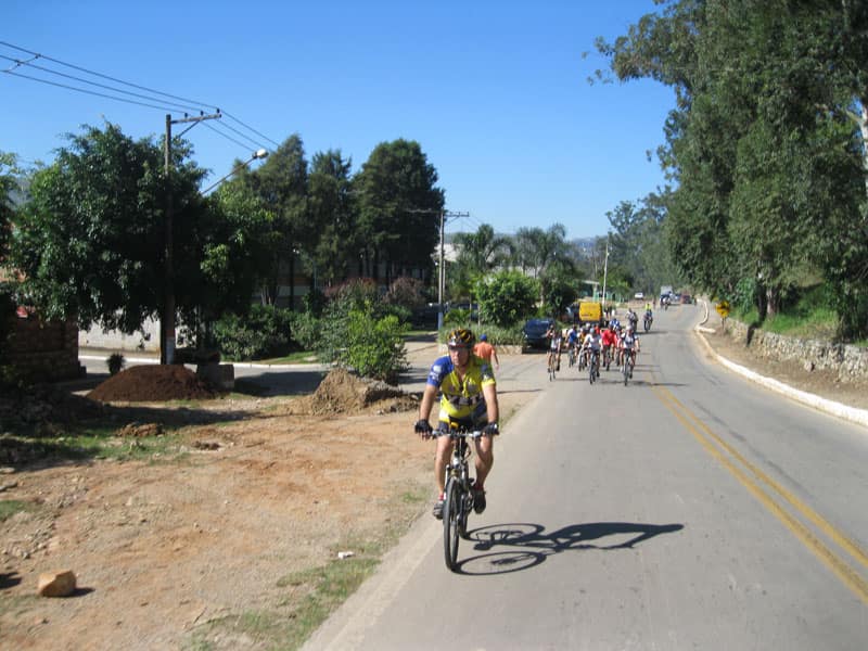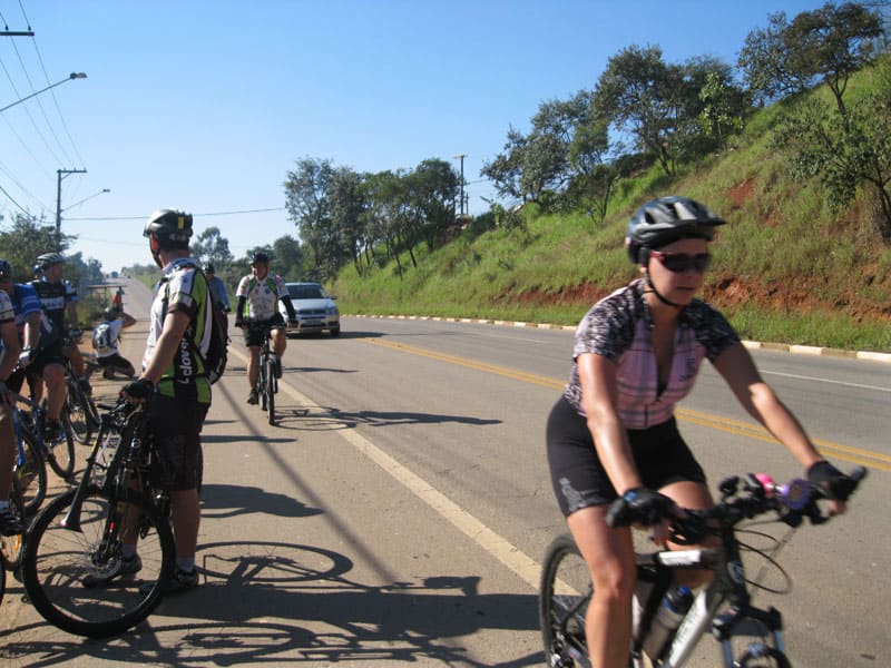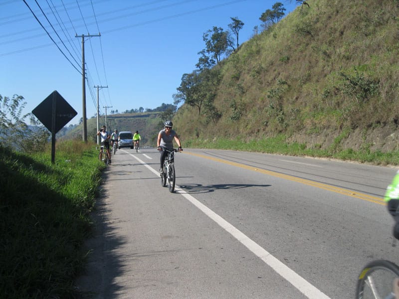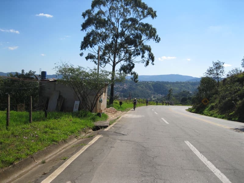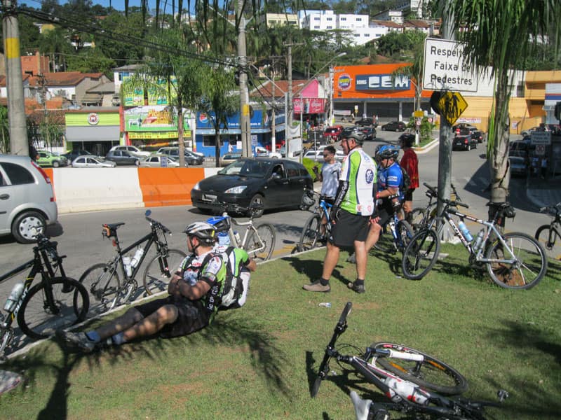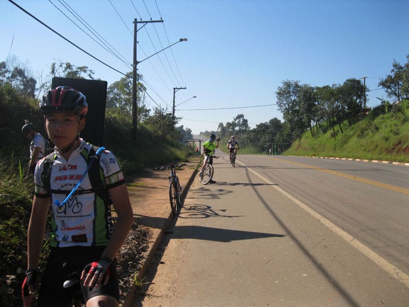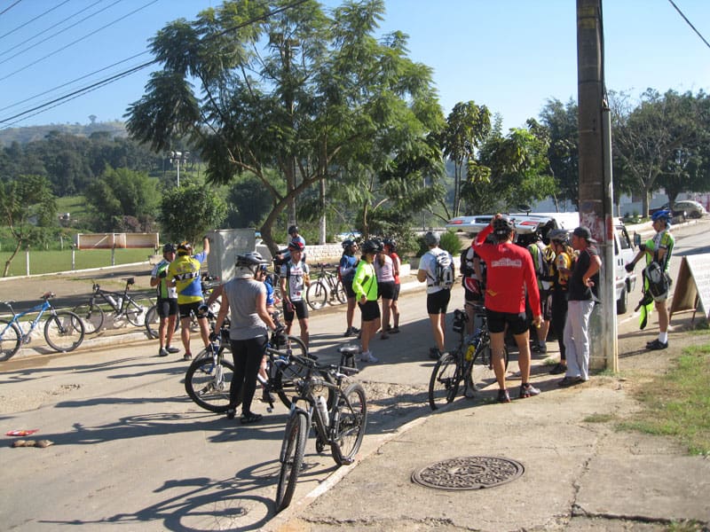 Fui pela Corifeu – Autonomistas – Romeiros saindo do Morumbi foi bem rápido, cheguei muito cedo e hoje era dia do XI Encontro Antigomobilismo de Santana de Parnaíba um evento da Federação Brasileira de Veiculos Antigos (FBVA) então o centro histórico estava com acesso restrito e tive que estacionar perto da Estrada dos Romeiros mesmo. Rodei um pouco pelo Largo da Matriz aguardando a chegada da galera, o Flávio que costuma pedalar com o Olavo de Sábado chegou logo em seguida. Quando a caravana chegou foi impedida de estacionar nas proximidades e indicaram um terreno da prefeitura a uns 500 metros do monumento como local seguro para estacionar, eu e o Flávio seguimos de bike para lá e em poucos minutos estavamos pedalando pela Estrada dos Romeiros com o pessoal.
