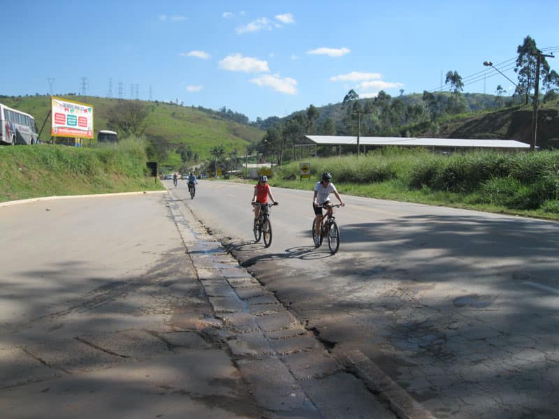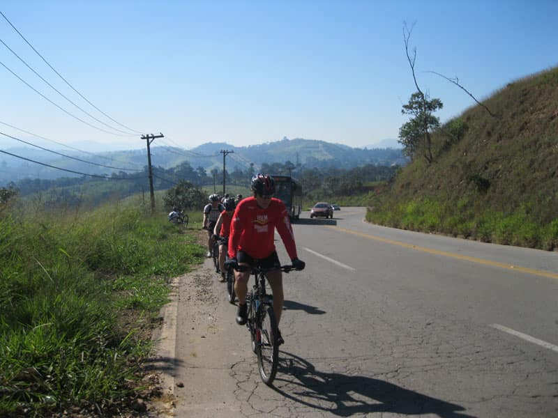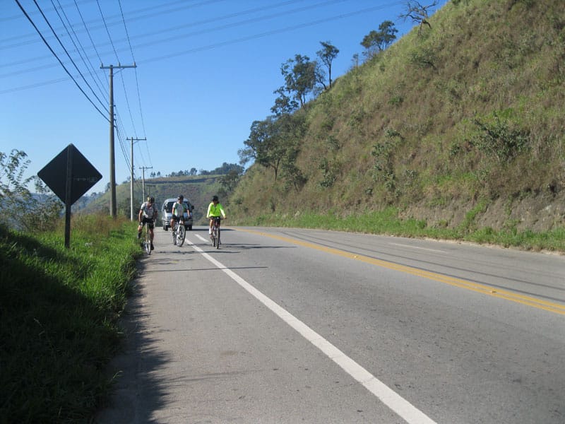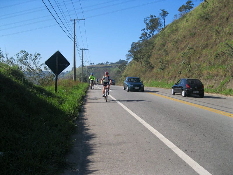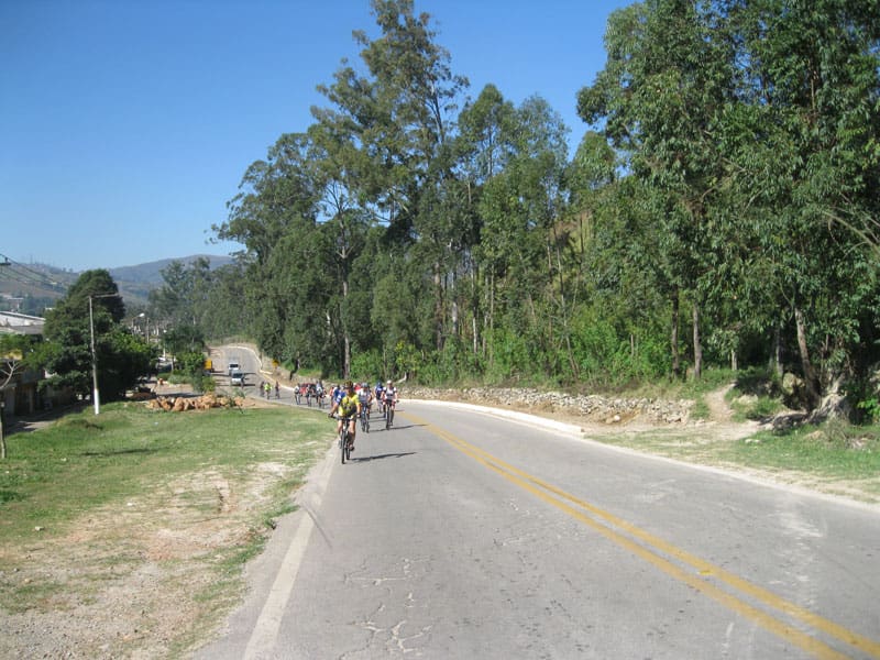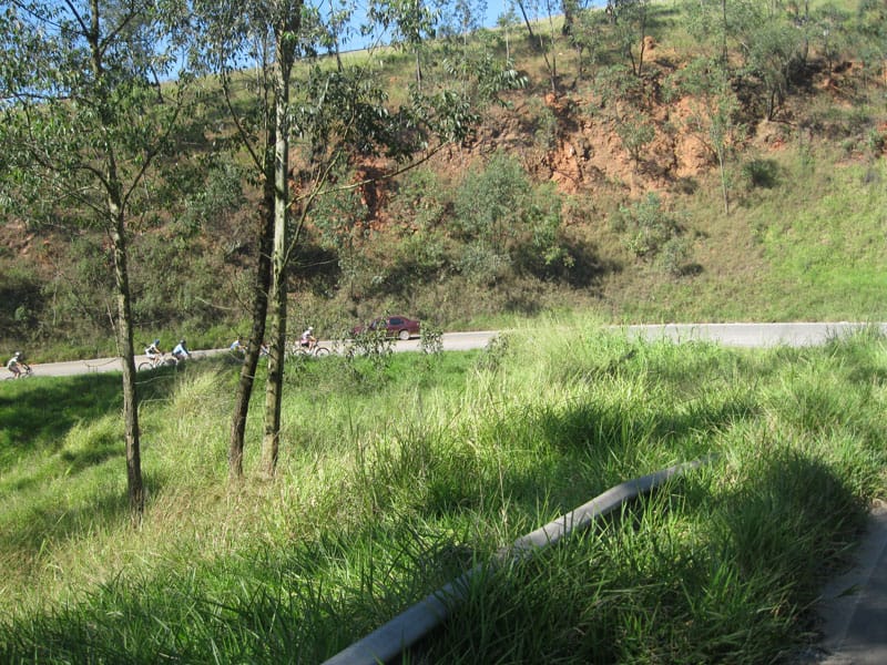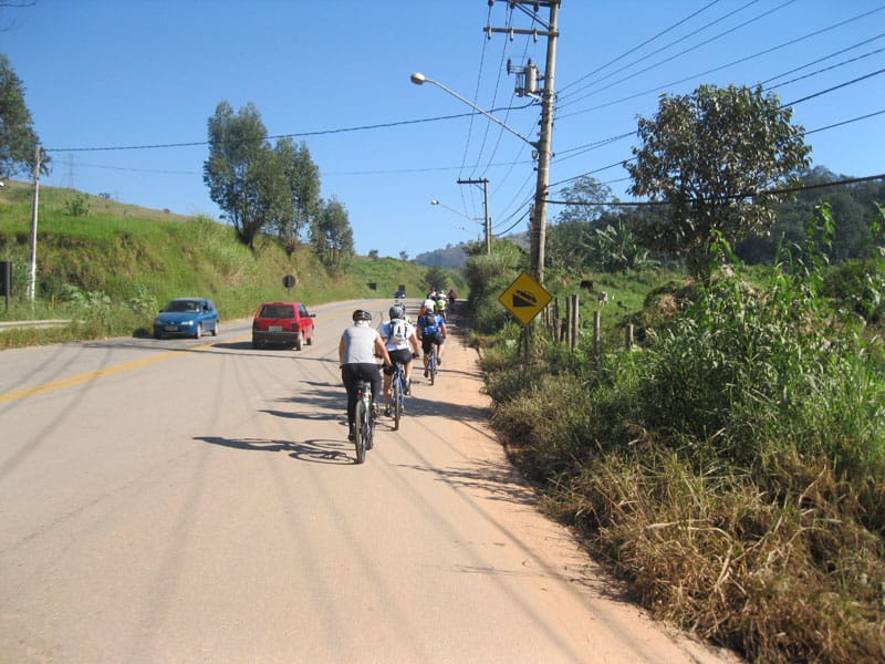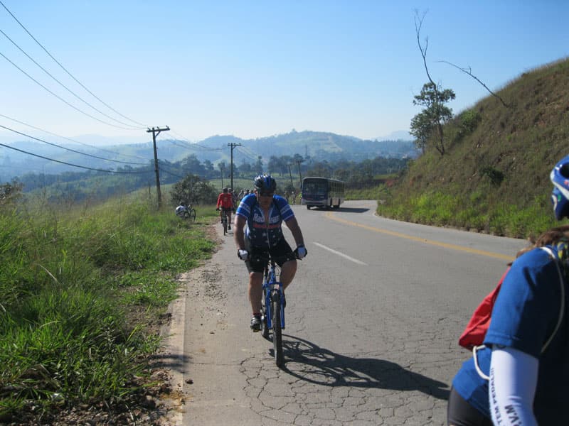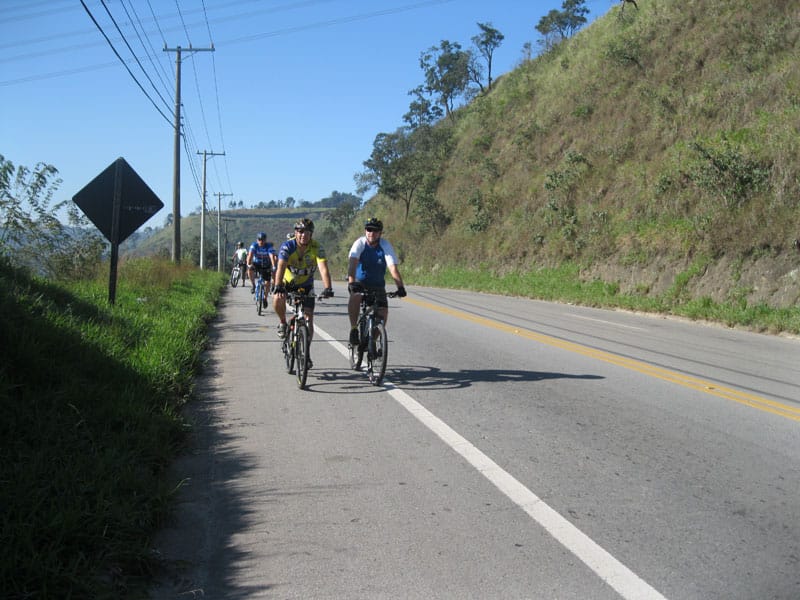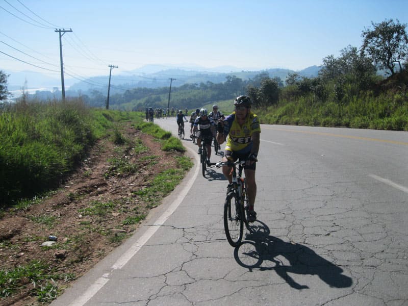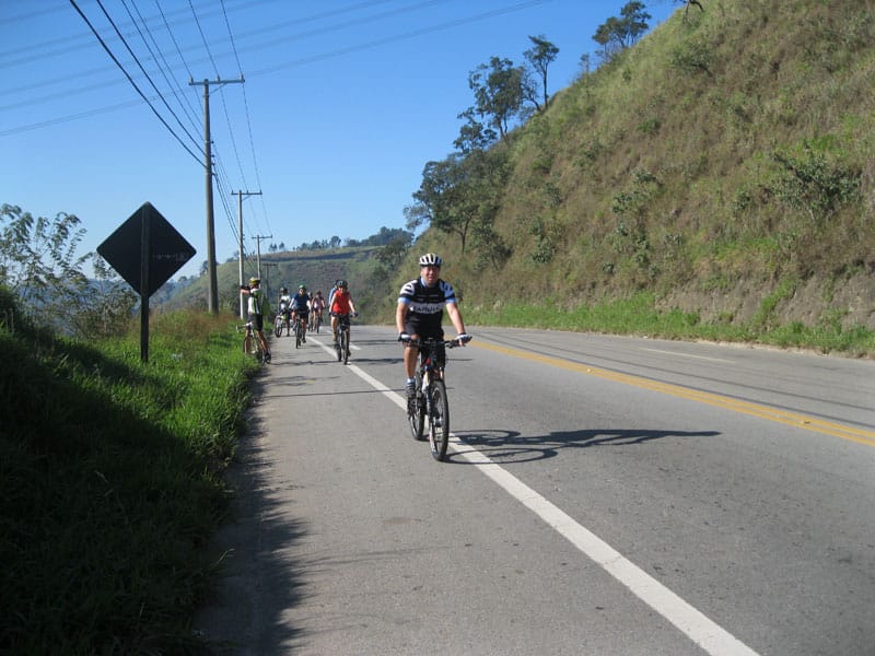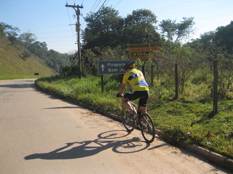 Fui pela Corifeu – Autonomistas – Romeiros saindo do Morumbi foi bem rápido, cheguei muito cedo e hoje era dia do XI Encontro Antigomobilismo de Santana de Parnaíba um evento da Federação Brasileira de Veiculos Antigos (FBVA) então o centro histórico estava com acesso restrito e tive que estacionar perto da Estrada dos Romeiros mesmo. Rodei um pouco pelo Largo da Matriz aguardando a chegada da galera, o Flávio que costuma pedalar com o Olavo de Sábado chegou logo em seguida. Quando a caravana chegou foi impedida de estacionar nas proximidades e indicaram um terreno da prefeitura a uns 500 metros do monumento como local seguro para estacionar, eu e o Flávio seguimos de bike para lá e em poucos minutos estavamos pedalando pela Estrada dos Romeiros com o pessoal.