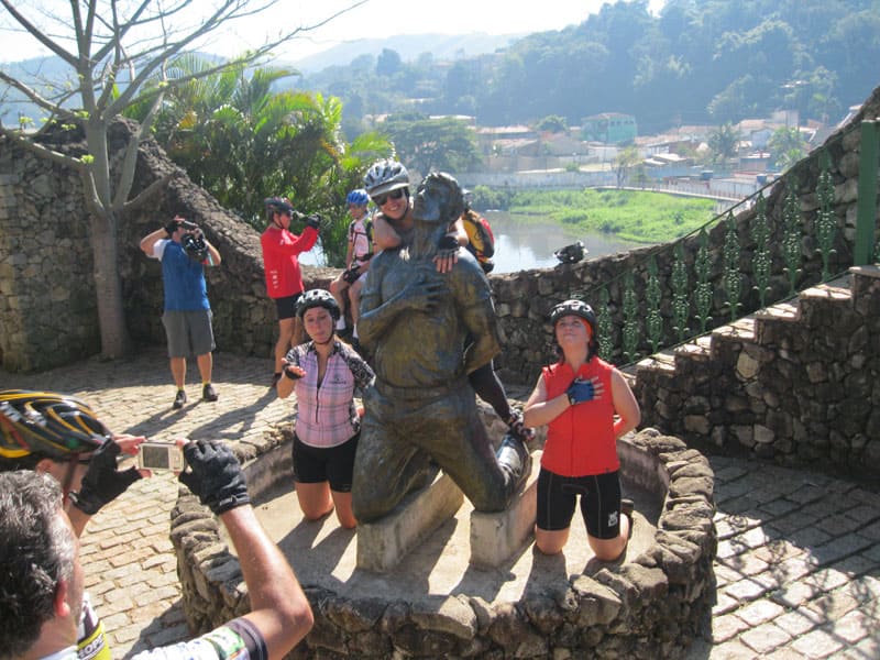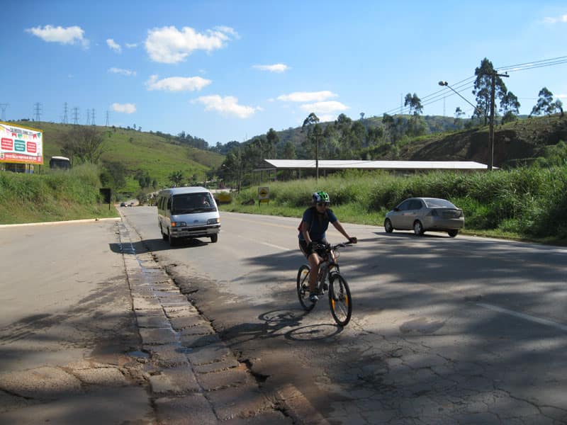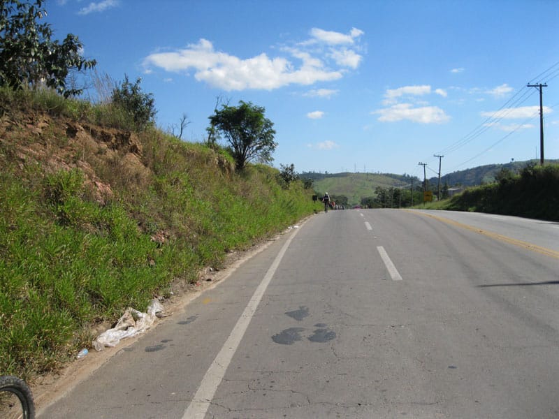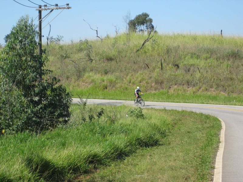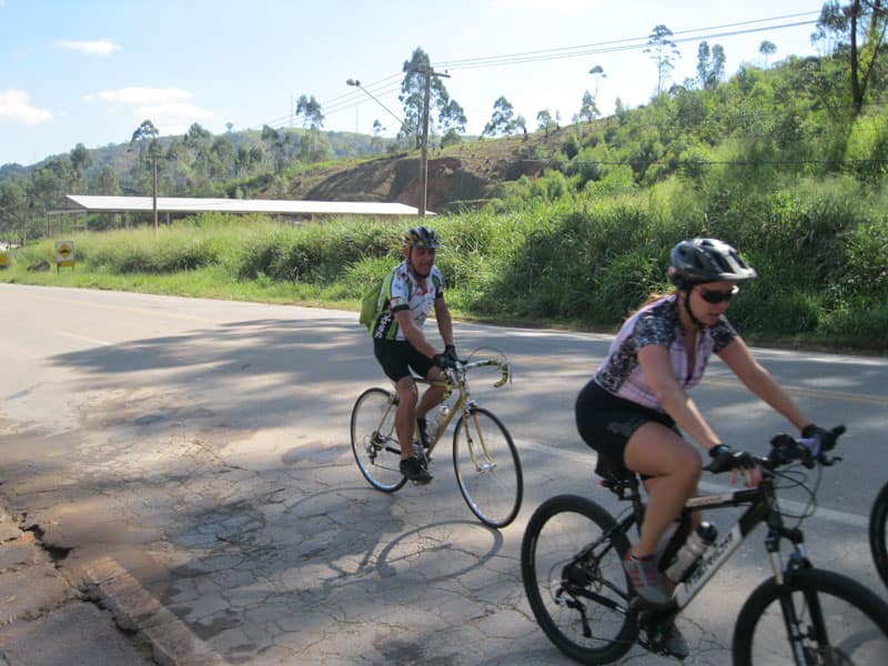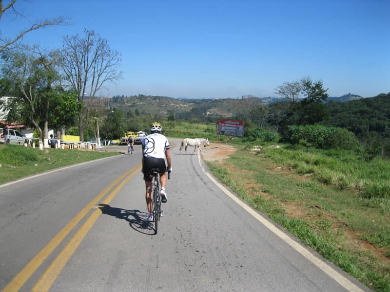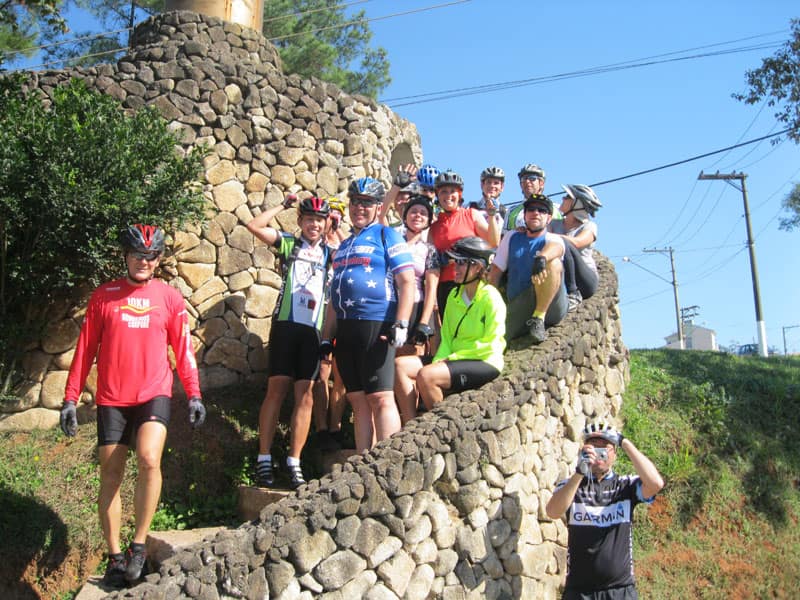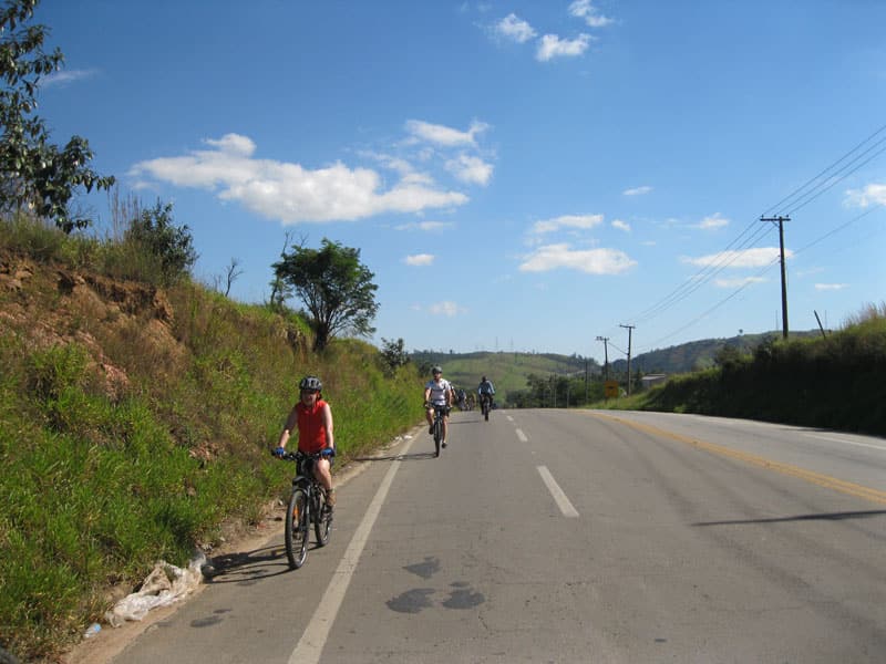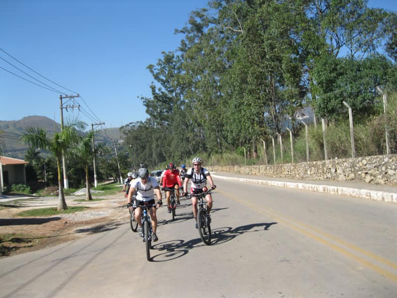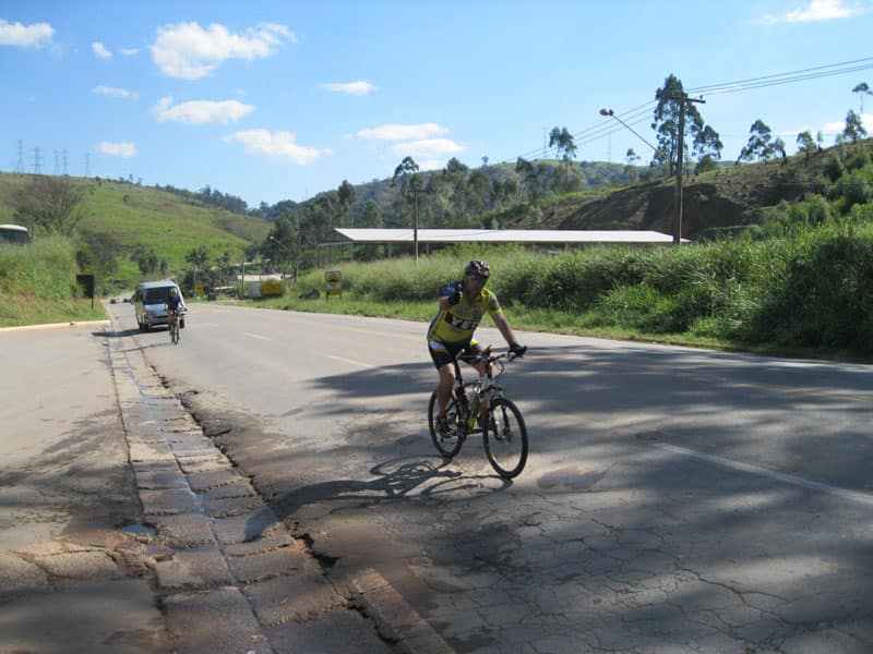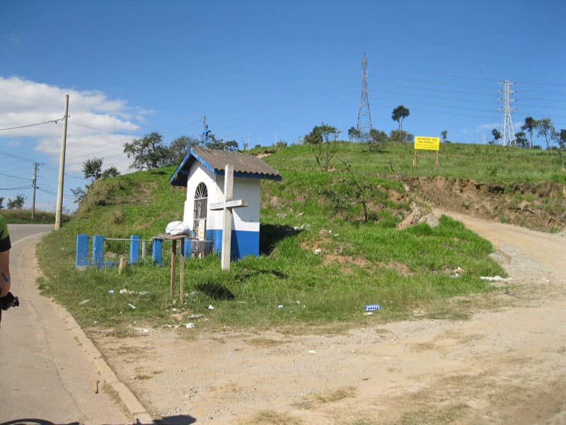 Fui pela Corifeu – Autonomistas – Romeiros saindo do Morumbi foi bem rápido, cheguei muito cedo e hoje era dia do XI Encontro Antigomobilismo de Santana de Parnaíba um evento da Federação Brasileira de Veiculos Antigos (FBVA) então o centro histórico estava com acesso restrito e tive que estacionar perto da Estrada dos Romeiros mesmo. Rodei um pouco pelo Largo da Matriz aguardando a chegada da galera, o Flávio que costuma pedalar com o Olavo de Sábado chegou logo em seguida. Quando a caravana chegou foi impedida de estacionar nas proximidades e indicaram um terreno da prefeitura a uns 500 metros do monumento como local seguro para estacionar, eu e o Flávio seguimos de bike para lá e em poucos minutos estavamos pedalando pela Estrada dos Romeiros com o pessoal.
