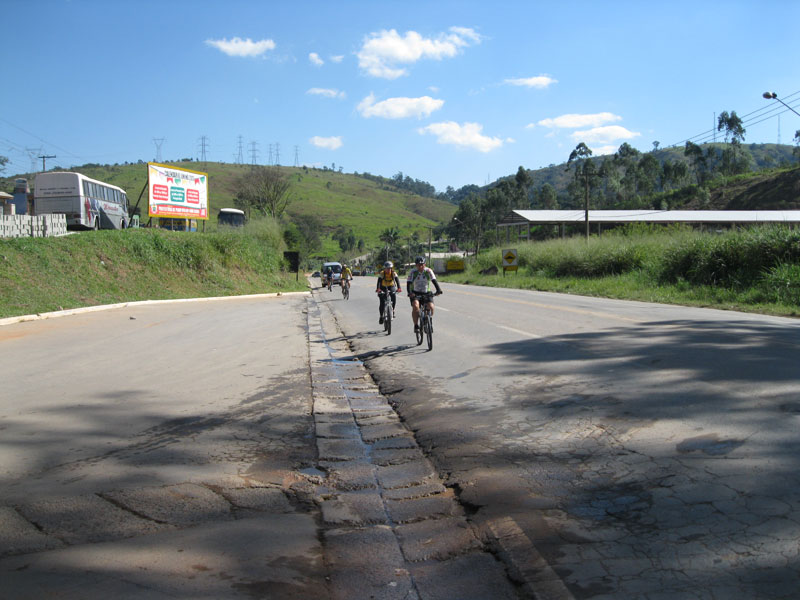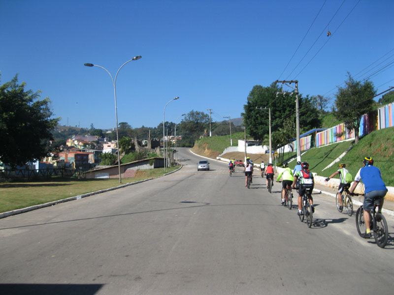 Fui pela Corifeu – Autonomistas – Romeiros saindo do Morumbi foi bem rápido, cheguei muito cedo e hoje era dia do XI Encontro Antigomobilismo de Santana de Parnaíba um evento da Federação Brasileira de Veiculos Antigos (FBVA) então o centro histórico estava com acesso restrito e tive que estacionar perto da Estrada dos Romeiros mesmo. Rodei um pouco pelo Largo da Matriz aguardando a chegada da galera, o Flávio que costuma pedalar com o Olavo de Sábado chegou logo em seguida. Quando a caravana chegou foi impedida de estacionar nas proximidades e indicaram um terreno da prefeitura a uns 500 metros do monumento como local seguro para estacionar, eu e o Flávio seguimos de bike para lá e em poucos minutos estavamos pedalando pela Estrada dos Romeiros com o pessoal.