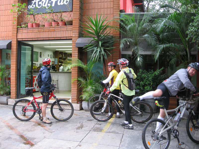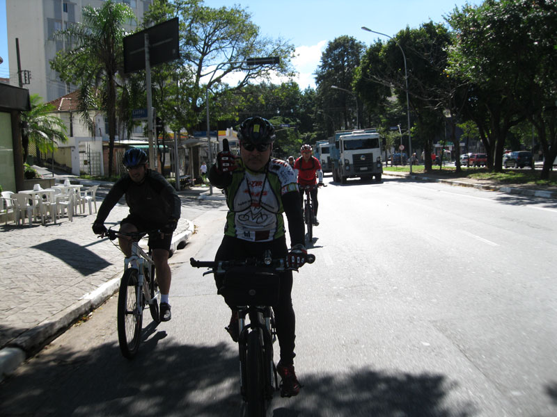 Como a previsão para hoje cedo era de chuva eu acordei mais tarde, perto de 9:00 o asfalto começava a secar então resolvi passar pela FNAC pra ver se ia ter pedal hoje. Como amanheceu chovendo e amanhã é feriado pouca gente veio pedalar, no fim fizemos o pedal em 13 bikes com o Otoni e o Tata nos guiando. Rodamos por volta de 30km com algumas subidas interessantes e o melhor sem chuva forte durante todo o percurso. Terminamos o pedal na Art-Pão como de costume.