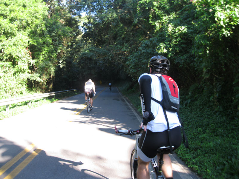 Eu o Serginho e o Sylvio resolvemos subir o Pico hoje cedo, passamos no Pedal da Vila mas o pessoal não ia, só o Vinicius apareceu. Como não tinha ninguém da loja decidimos subir o Pico duas vezes, por lá encontramos o Robertinho, que subia sozinho e depois subiu a segunda vez com a gente. Por incrível que parece aquela história de que a segunda subida parece mais fácil é real, não sei se por estar superaquecido. Depois passamos pela USP demos um alô pro Olavo e pra galera e ainda rodamos um pouco com o Val e o Lucas que estavam por lá, eu e o Sergio ainda subimos a Circular do Bosque pra fechar com chave de ouro o treino de hoje. Rodei 78.46km com 1278m de elevação total