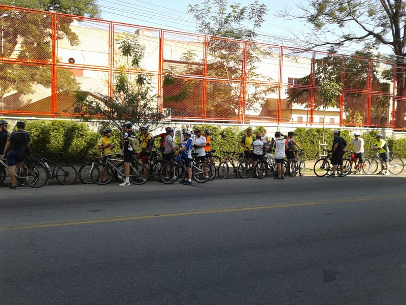 A pracinha ficou lotada e fomos divididos em dois grupos o Olavo comandando um e o Edson o outro, apesar do cansaço estava muito afim de pedalar um pouco mais forte e fui com o grupo do Edson.