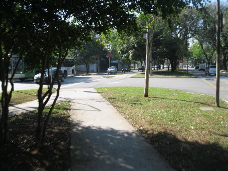 Sai da Ciclovia e fui pra Ciclovia da Brig. Faria Lima, entrei no trecho que fica na Av. Prof. Fonseca Rodrigues apesar da pista lá estar lisinha a sinalização é inexistente em alguns pontos até perigoso para cruzar as ruas. No trecho entre o começo da Brigadeiro e a Rua dos Pinheiros é preciso cuidado redobrado, pinos no piso, placas de concreto quebradas, desníveis, postes e bancos no meio da pista, uma verdadeira confusão. O trecho final é excelente bem sinalizado e pelo que vi muita gente usa esse caminho para ir trabalhar, eu entrei na ciclovia próximo ao Villa Lobos as 8:54h e sai próximo a Av. 9 de Julho as 9:12h, ou seja 18 minutos com paradas pra foto no caminho, com certeza muito mais rápido que os automóveis que estavam paradas por todo o percurso.