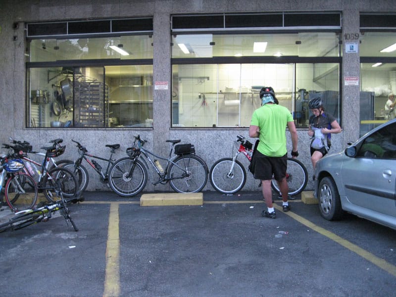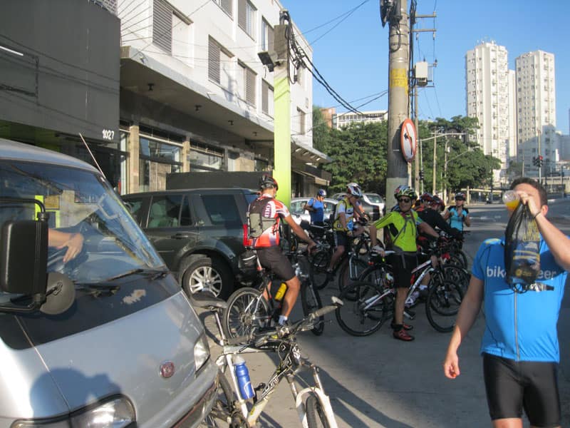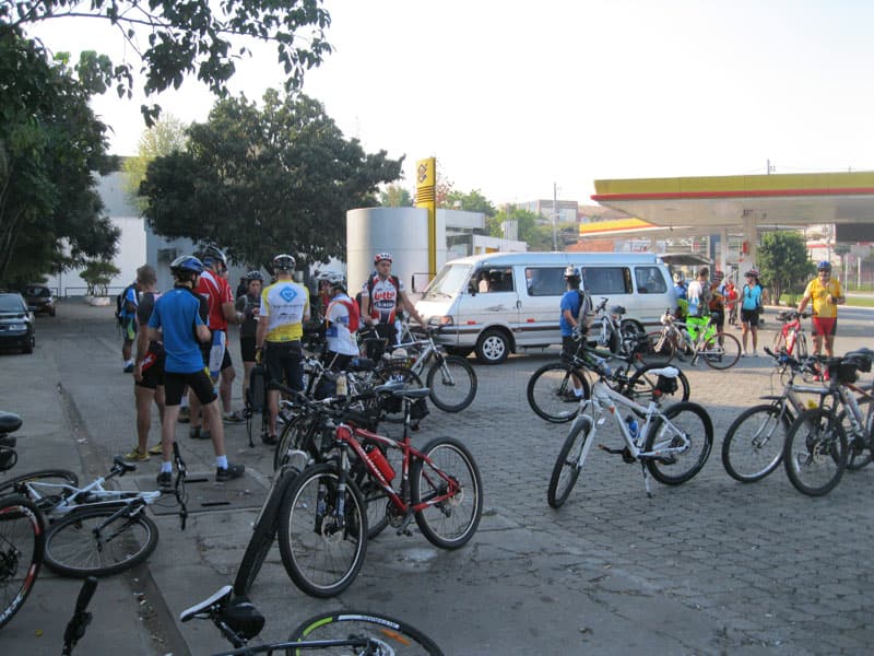 Combinei com o Serginho de subir o Pico do Jaraguá hoje cedo, seguimos pra loja do Pedal da Vila pra fazer a subida treino com eles, o César estava lá e foi o comandante da empreitada.