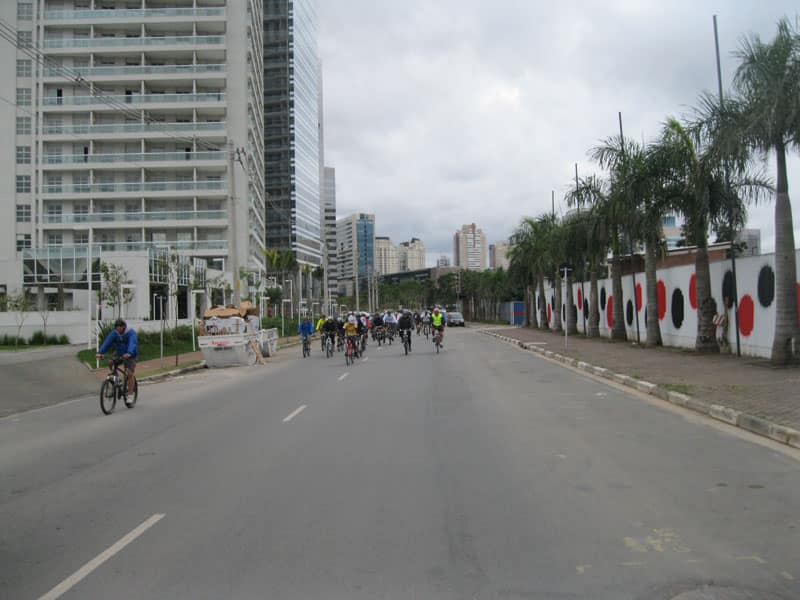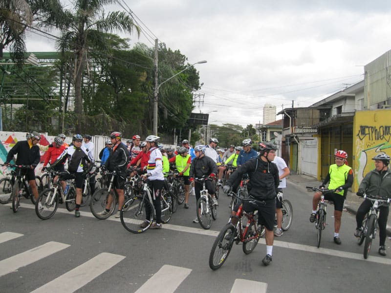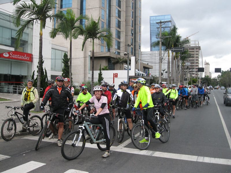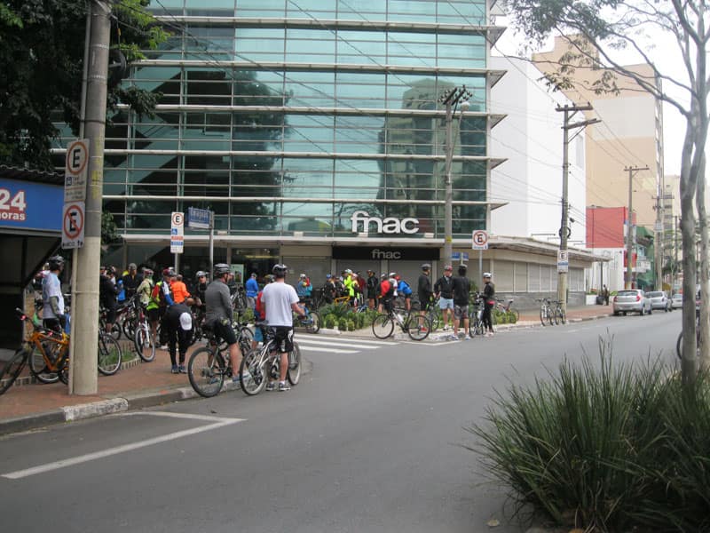Depois da escalada dura de ontem, hoje resolvi girar um pouco na ciclofaixa de leve e ir pro Olavo. Cheguei na FNAC em cima da hora e gostei do que vi, apesar do vento forte e gelado a pracinha estava cheia. Apesar da quantidade de ciclistas ser razoável seguimos em um só grupo guiados pelo Edson.