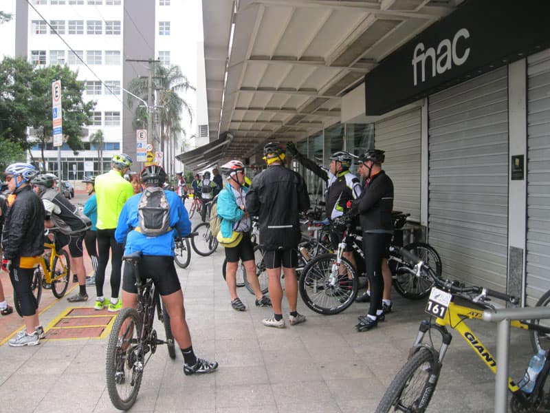 Depois da escalada dura de ontem, hoje resolvi girar um pouco na ciclofaixa de leve e ir pro Olavo. Cheguei na FNAC em cima da hora e gostei do que vi, apesar do vento forte e gelado a pracinha estava cheia. Apesar da quantidade de ciclistas ser razoável seguimos em um só grupo guiados pelo Edson.