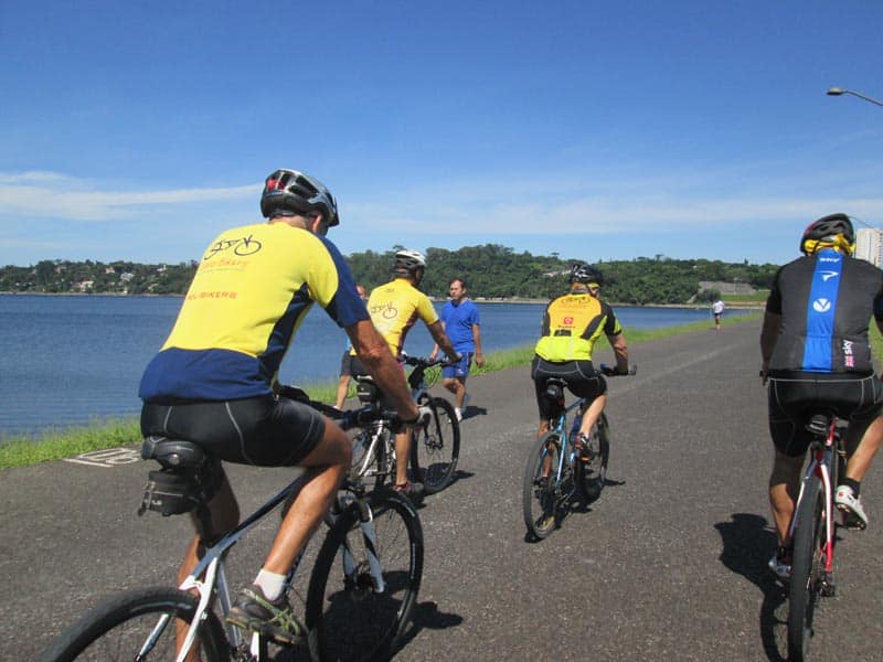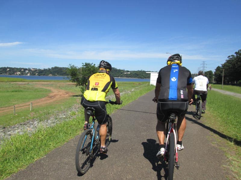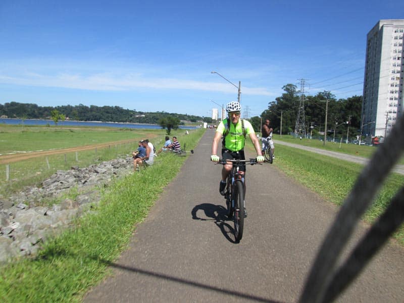 Muita gente afim de aproveitar o sol, quando cheguei na pracinha da Fnac já tinha bikes suficientes para fazer duas turmas. Segui no grupo do Edson o outro grupo foi guiado pelo Aquiles. Fizemos a região da Represa de Guarapiranga e uma parte dela infelizmente já está completamente seca. Apesar do sol o grupo conseguiu manter um ritmo acelerado e chegamos na Padoca com quase 50k 🙂