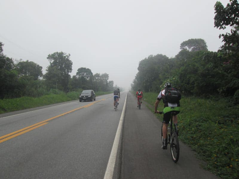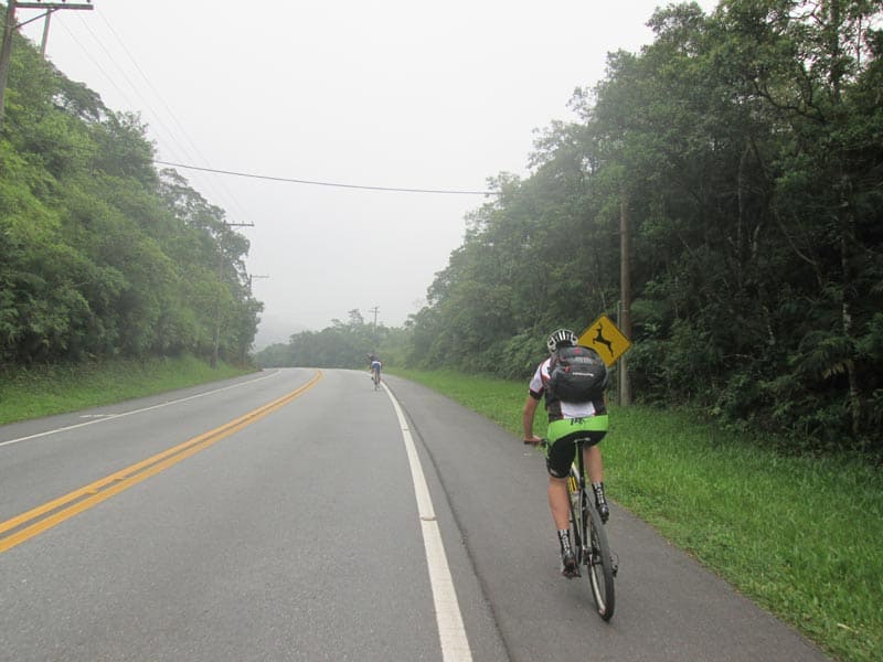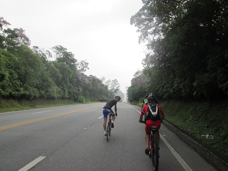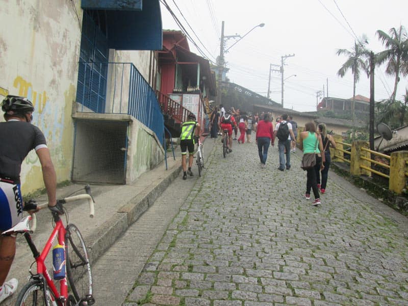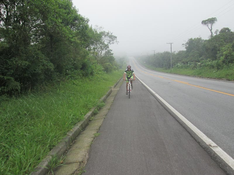Eu bem fora de forma nem sabia se conseguiria fazer os mais de 160k mas como é possível voltar de trem resolvi arriscar. Estava bem quente mas com céu nublado o que foi providencial, seguimos num ritmo forte do começo da Imigrantes até a Indío Tibiriça, quando chegamos em Paranapiacaba o tempo continuava nublado e havia bastante neblina (Que é uma atração a parte no caso de Paranapiacaba), fizemos uma parada de mais ou menos uma hora e meia para visitar alguns pontos da cidade e aproveitei para experimentar um sorvete de Cambuci que é delicioso. Por sorte não veio nem chuva nem garoa e conseguimos andar bastante pela cidade e tirar muitas fotos.