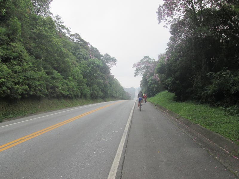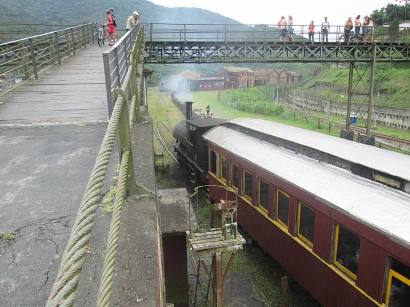 Eu bem fora de forma nem sabia se conseguiria fazer os mais de 160k mas como é possível voltar de trem resolvi arriscar. Estava bem quente mas com céu nublado o que foi providencial, seguimos num ritmo forte do começo da Imigrantes até a Indío Tibiriça, quando chegamos em Paranapiacaba o tempo continuava nublado e havia bastante neblina (Que é uma atração a parte no caso de Paranapiacaba), fizemos uma parada de mais ou menos uma hora e meia para visitar alguns pontos da cidade e aproveitei para experimentar um sorvete de Cambuci que é delicioso. Por sorte não veio nem chuva nem garoa e conseguimos andar bastante pela cidade e tirar muitas fotos.