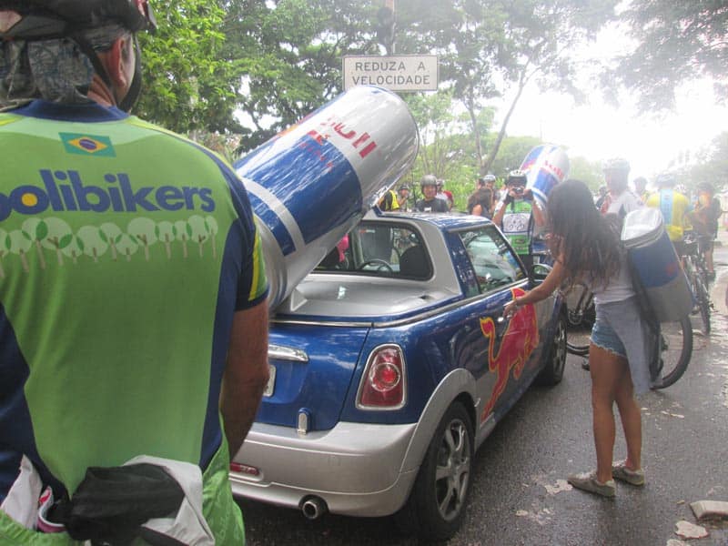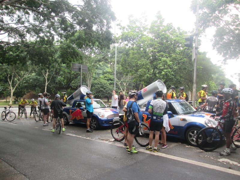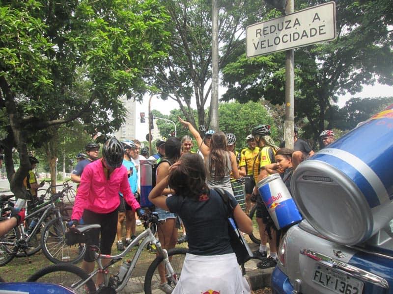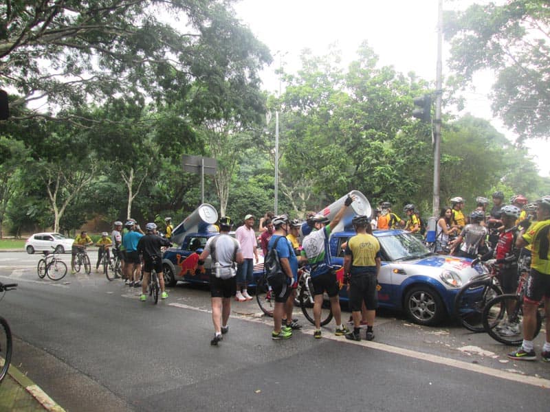 Tempo nublado logo cedo, quando estava saindo do meu prédio começou a garoar, tinha decidido pedalar mesmo com chuva e resolvi passar na Fnac pra ver se mais algum maluco queria pedalar com tempo ruim. Pra minha surpresa a pracinha estava cheia e mesmo com a garoa saiu um grupo razoável com o Edson no comando. Fizemos um giro muito bom com pouco mais de 40km e garoa, chuva, sol e tempo nublado se alternando durante todo o trajeto. No final da subida da Sumaré recebemos um Red Bull geladinho das garotas Red Bull que encontramos quando começamos a subir. Encerramos na Art-Pão e eu segui pro Morumbi com o Serginho. Finalizei com 54,8k e 474m de elevação (Strava).