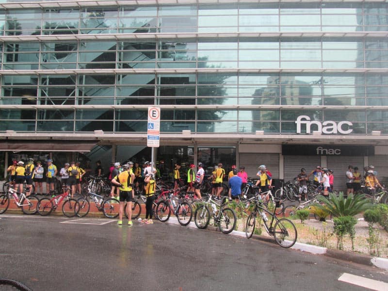 Tempo nublado logo cedo, quando estava saindo do meu prédio começou a garoar, tinha decidido pedalar mesmo com chuva e resolvi passar na Fnac pra ver se mais algum maluco queria pedalar com tempo ruim. Pra minha surpresa a pracinha estava cheia e mesmo com a garoa saiu um grupo razoável com o Edson no comando. Fizemos um giro muito bom com pouco mais de 40km e garoa, chuva, sol e tempo nublado se alternando durante todo o trajeto. No final da subida da Sumaré recebemos um Red Bull geladinho das garotas Red Bull que encontramos quando começamos a subir. Encerramos na Art-Pão e eu segui pro Morumbi com o Serginho. Finalizei com 54,8k e 474m de elevação (Strava).