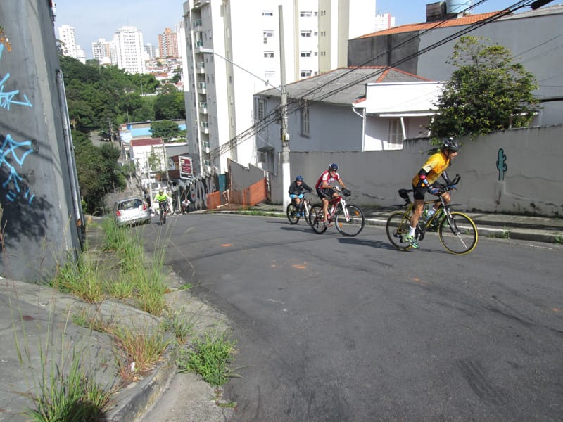 Eu fiz um caminho diferente desta vez e subi até a Av. Paulista como era mesmo dia de subir já fui acumulando, depois quando saimos da Velodrome o Zé fez um caminho sensacional e acumulei mais subidas ainda. Quando chegou na Bagiru acho que já tinha subido um 300 metros 🙂