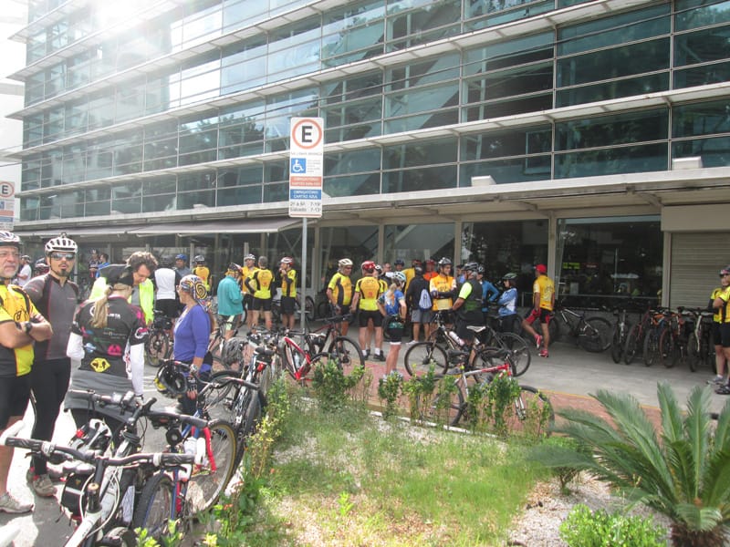 Acordei com um sol maravilhoso e resolvi fazer um giro por São Paulo antes de ir pro Pedal do Olavo, fiz um pouco de subidas e perto das 9:30 estava chegando na Fnac. A galera foi dividida em duas turmas a que eu fui guiada pelo Edson, e a outra pelo Tuca.