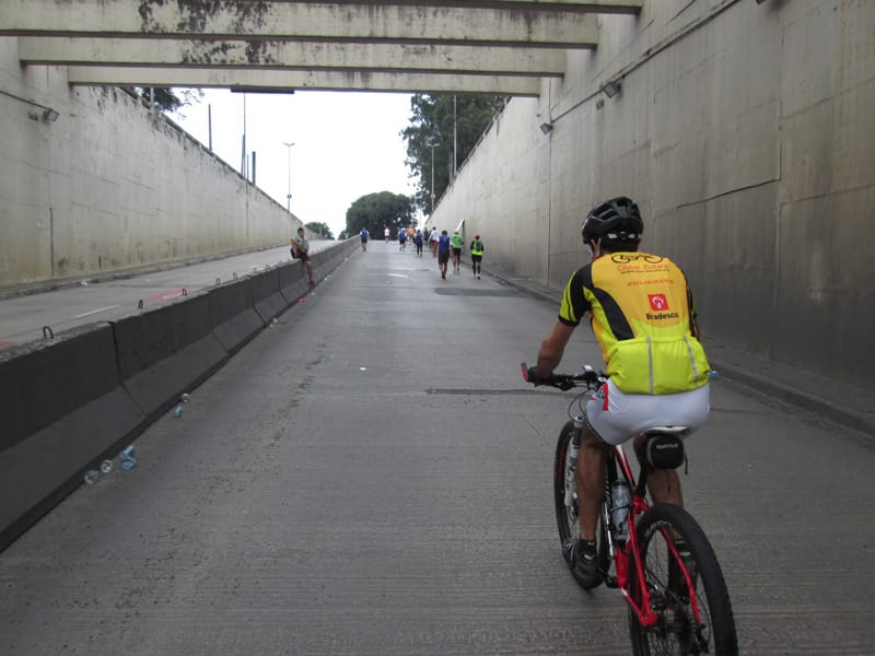 A idéia hoje era girar bastante num trajeto mais plano. Na região da Chacará Meyer em Interlagos o Valdemar e eu nos desgarramos do grupo. Seguimos em direção a entrada da ciclovia e pretendiamos seguir por ela até a padoca mas o vento estava muito forte e por telefone o Edson sugeriu que pegassemos o trem na volta. Seguimos essa dica e passeei pela primeira vez de bike no trem da CPTM. Fizemos apenas da estação Jurubatuba até a Cidade Jardim e depois pedalamos até a Art-Pão que fica a uns 300 metros da estação. Da padoca fui embora com o Serginho pro Morumbi. Girei 89,7 km (descontada a viagem no trem 🙂 ) com 725m de elevação (Strava).