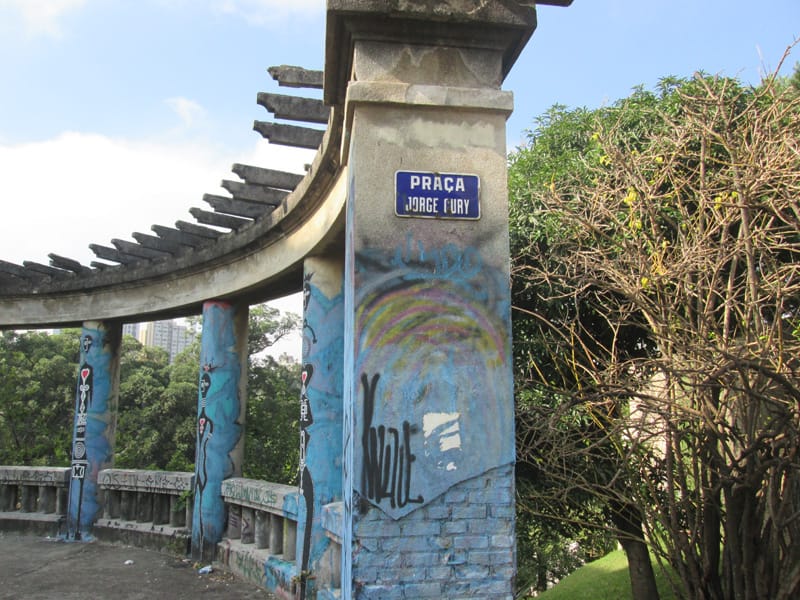 Na rua de baixo a praça Jorge Cury recebeu grafites e apesar do abandono ficou com uma aparência melhor, se fosse revitalizada poderia ser um cartão postal da região.