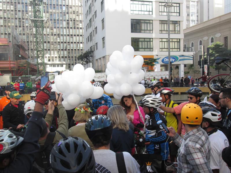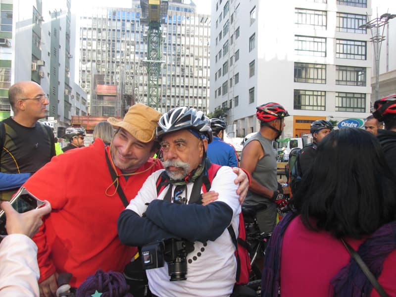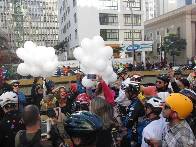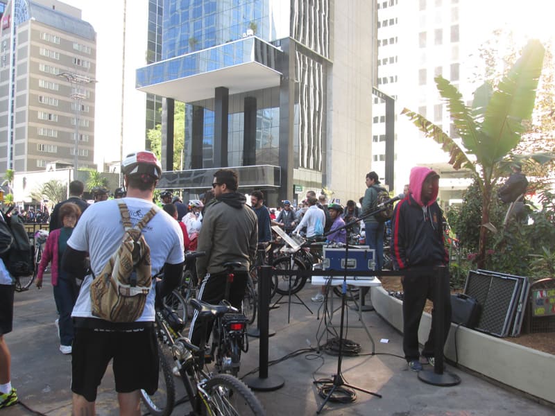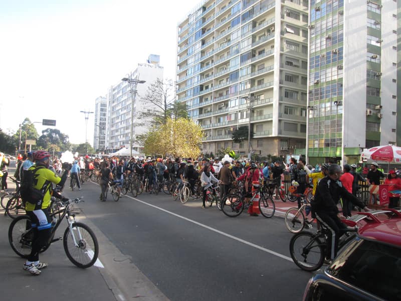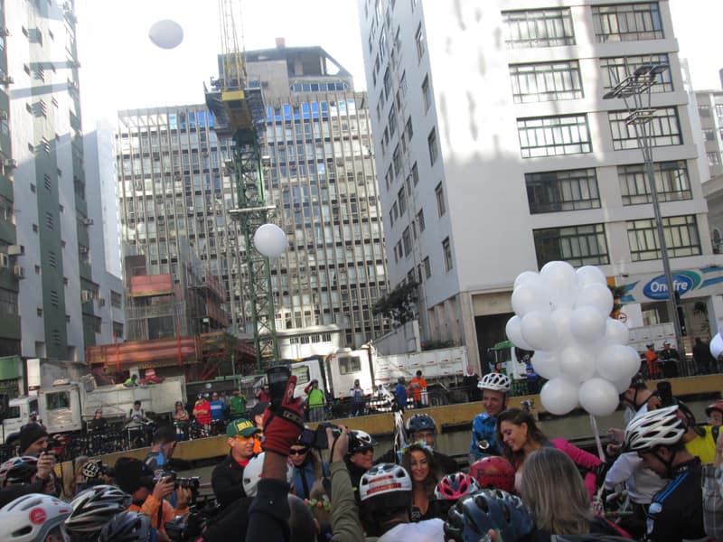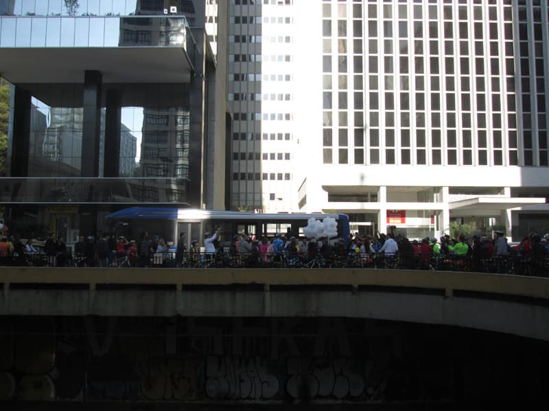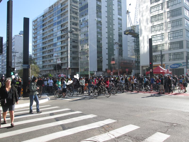 Subi pela Augusta e no trajeto só encontrei uma ciclista subindo, achei estranho e temi que o frio tivesse espantado a galera mas quando cheguei na praça do ciclista ela estava lotada. Foi um evento divertido, pacífico e consegui boas fotos. Durante a semana vou tentar fazer um giro pela ciclovia completa.