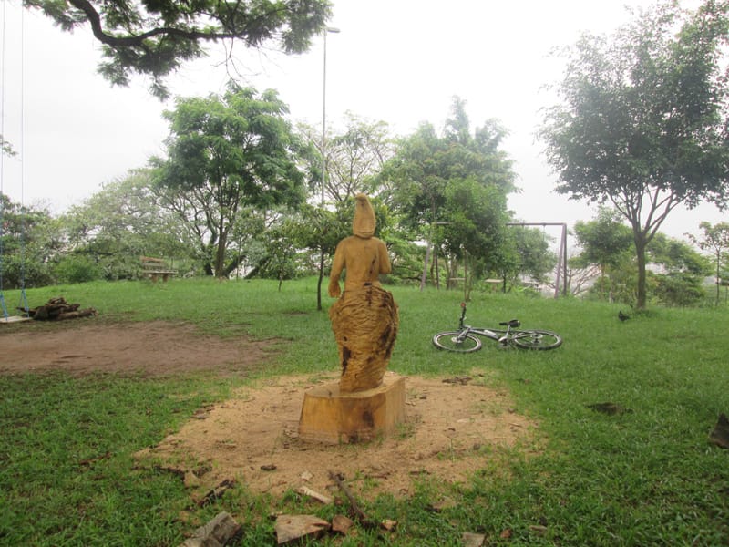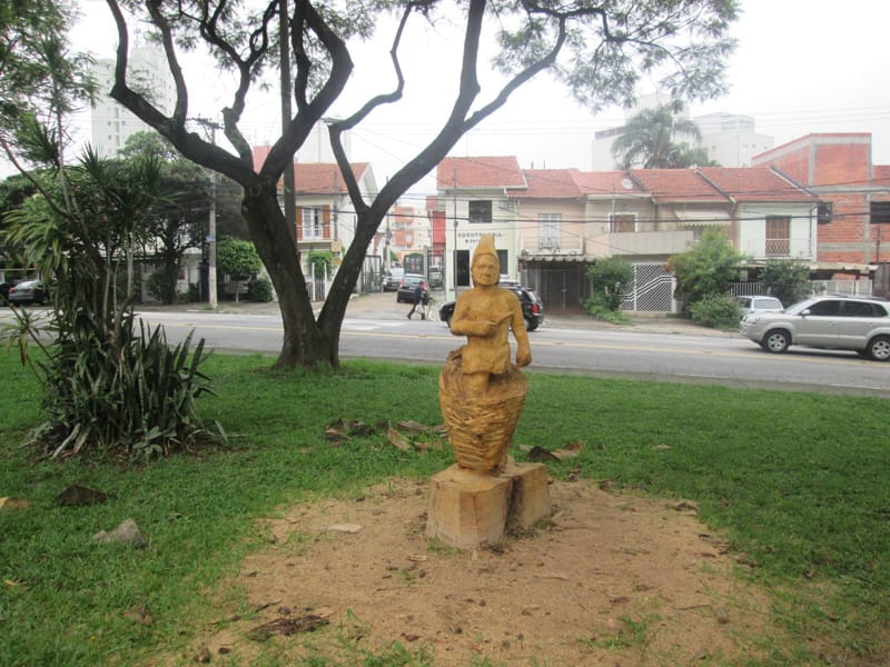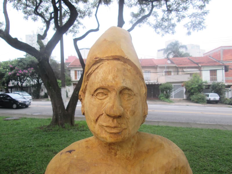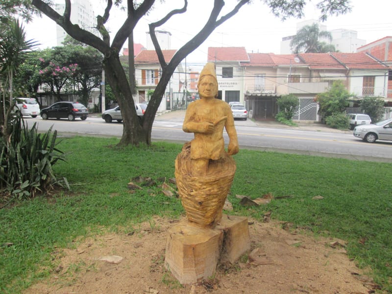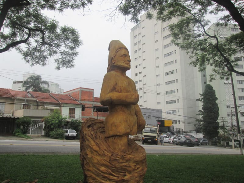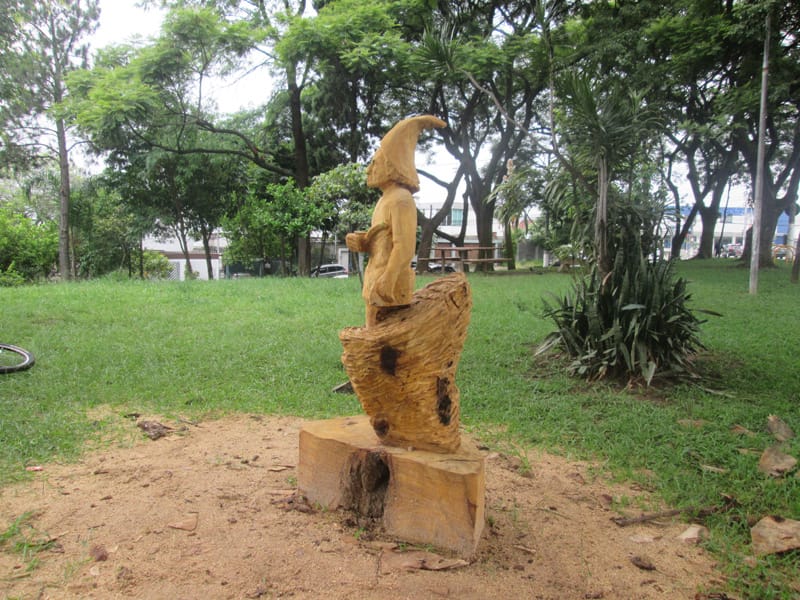 No giro de quinta o Tuca mencionou a existência de uma estátua esculpida num pedaço de tronco de uma árvore que caiu na região da Lapa, depois do trabalho do escultor os moradores pediram a prefeitura que deixasse a estátua na praça. Me programei para ir fotografar a estátua hoje cedo. Pra girar um pouco fui até o Jabaquara primeiro e depois segui pelo corredor da Paulista até a praça Amadeu Decome, no caminho ainda no Paraíso meu pneu furou (assim como no sábado passado!) e desta vez resolvi usar o Patch da Parktools ao invés de colocar uma câmara de ar nova. Quando cheguei na esquina da praça já dava para ver a escultura, é muito bem feita e está assinada por Rafael Mifano que tem uma página no Facebook lá descobri que é a representação de um Saci e que ele aceita encomendas de esculturas. Vale a pena visitar a página dele. Depois da Lapa deu um giro pelo Parque Villa Lobos e voltei pra casa, foram 48,9kms com 479m de elevação(Strava).