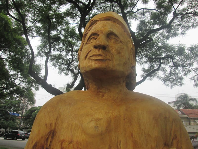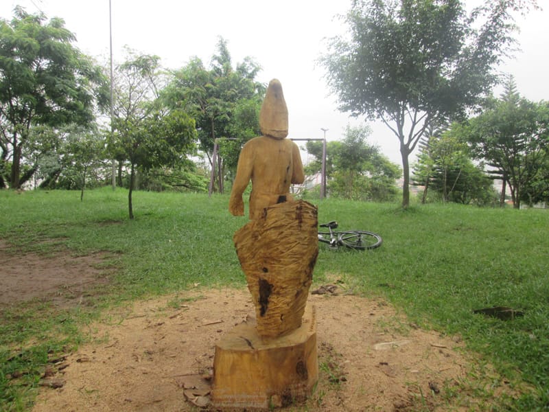 No giro de quinta o Tuca mencionou a existência de uma estátua esculpida num pedaço de tronco de uma árvore que caiu na região da Lapa, depois do trabalho do escultor os moradores pediram a prefeitura que deixasse a estátua na praça. Me programei para ir fotografar a estátua hoje cedo. Pra girar um pouco fui até o Jabaquara primeiro e depois segui pelo corredor da Paulista até a praça Amadeu Decome, no caminho ainda no Paraíso meu pneu furou (assim como no sábado passado!) e desta vez resolvi usar o Patch da Parktools ao invés de colocar uma câmara de ar nova. Quando cheguei na esquina da praça já dava para ver a escultura, é muito bem feita e está assinada por Rafael Mifano que tem uma página no Facebook lá descobri que é a representação de um Saci e que ele aceita encomendas de esculturas. Vale a pena visitar a página dele. Depois da Lapa deu um giro pelo Parque Villa Lobos e voltei pra casa, foram 48,9kms com 479m de elevação(Strava).