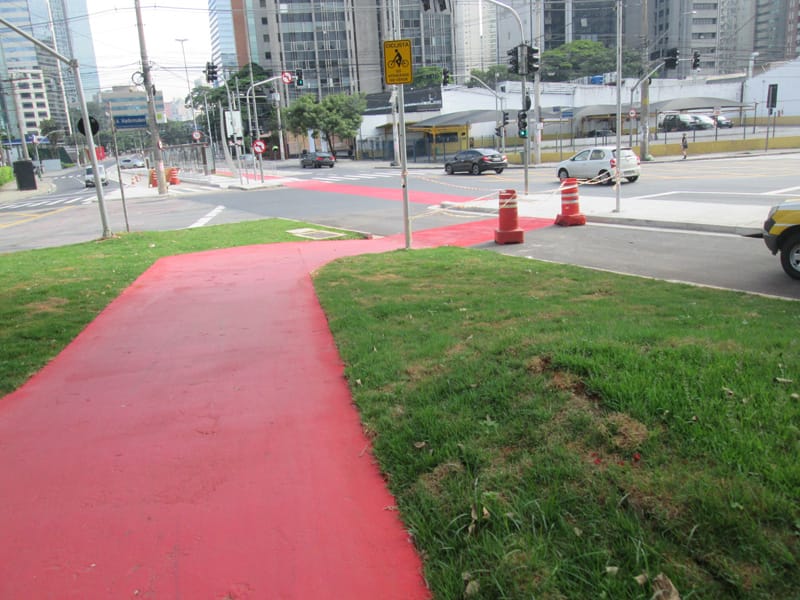 Hoje cedo fui visitar a ciclovia da Berrini que está quase finalizada, um pequeno trecho na Chucri Zaidan ainda não ficou pronto, mas da ponte do Morumbi até a Funchal já está transitável.
