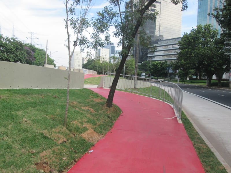 Hoje cedo fui visitar a ciclovia da Berrini que está quase finalizada, um pequeno trecho na Chucri Zaidan ainda não ficou pronto, mas da ponte do Morumbi até a Funchal já está transitável.