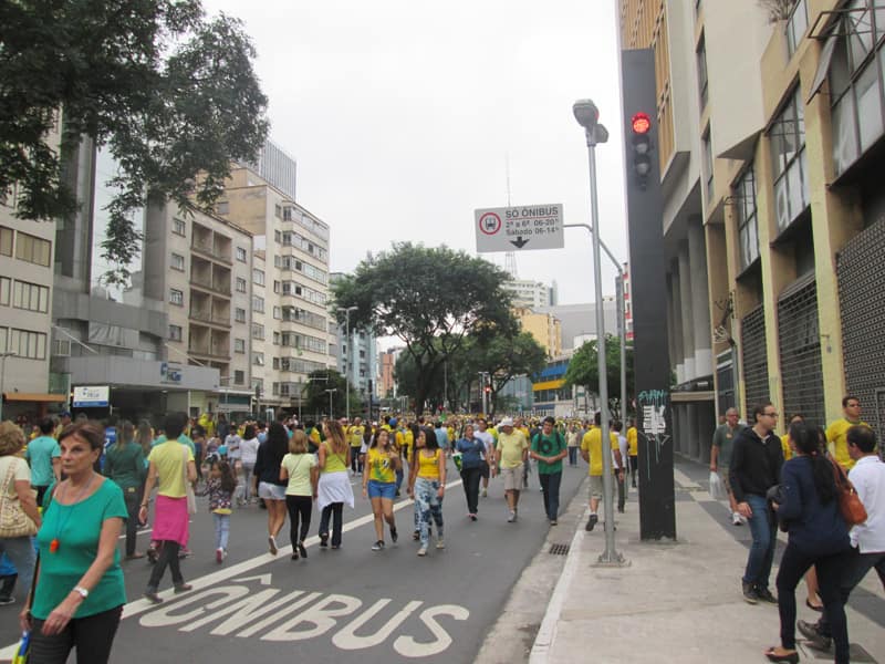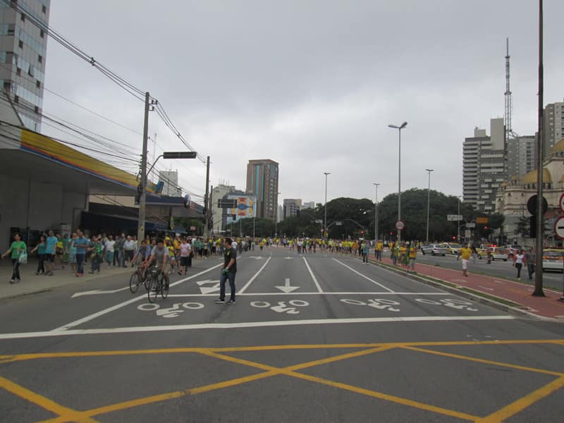 Fui almoçar em casa e combinei com o pessoal do Pedal do Olavo que os encontraria na esquina da Hadock com a Paulista. No caminho perto da Estados Unidos começou a ficar complicado até pra ir de bike. Depois de muita luta consegui chegar na Consolação e entrar na Alameda Santos, no ponto combinado só encontrei o Tony Abreu era tanta gente que ficou difícil transitar empurrando a bike, segui alguns kilometros pela alameda Santos e era incrível a quantidade de gente por lá, a galera ocupou a Paulista até a região do Paraíso, de lá fiz um girinho pra completar esse dia histórico pedalando. Já na Praça da Guianas encontrei a Maria Cecília que voltava da manifestação com a filha, ainda passei pela praça do por do sol e depois fui pra casa. Foram 53,8km com 497m de elevação(Strava).