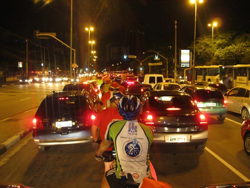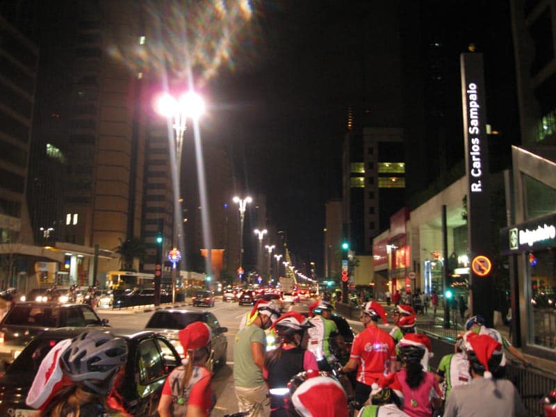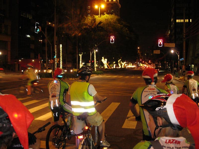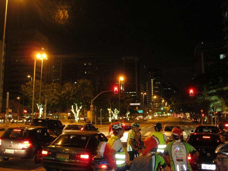 São Paulo tem trânsito a noite, em alguns pontos do trajeto mesmo sem decoração de natal, o trânsito parecia de uma tarde de semana por isso é bom tomar bastante cuidado quando pedalar a noite.