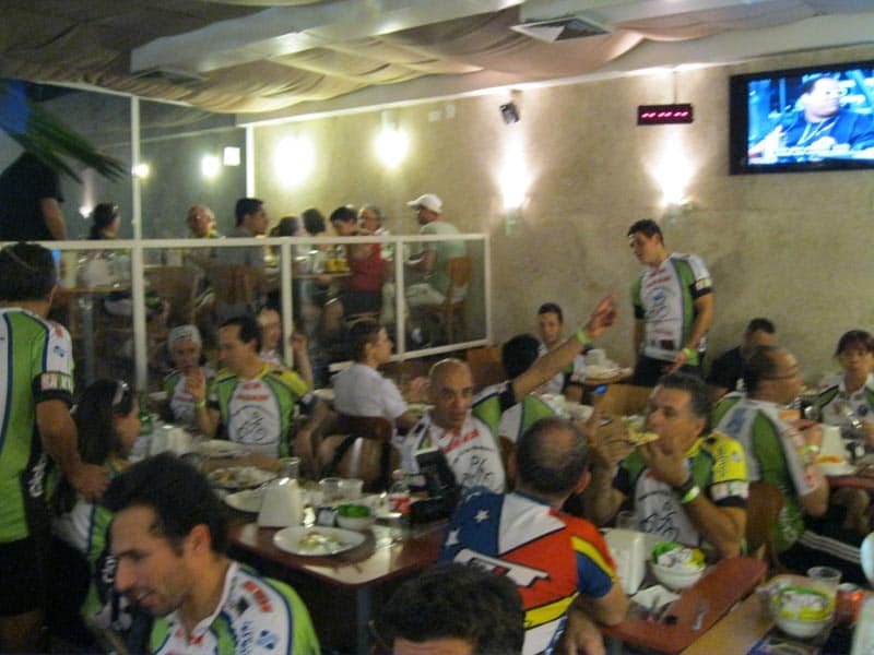 Durante o passeio tivemos algumas correntes quebradas e um pneu furado, fora isso correu tudo bem, por volta 01:00 do dia 17/12 estavamos de volta a padaria, o buffet estava uma delícia muita variedade e qualidade a vontade, doces, salgados, sucos, refeições, sobremesas enfim um verdadeiro banquete.