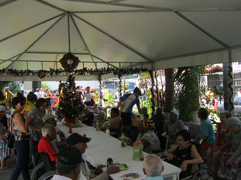 Depois de algum tempo de confraternização entre os senhores do asilo e os cilistas, a Irmã Natalina nos leu uma mensagem de Natal junto com o Olavo.