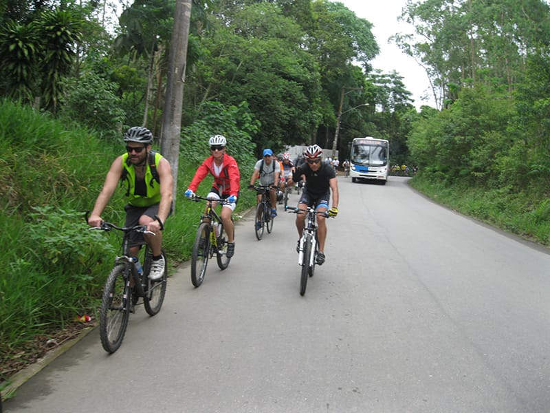 Uma dica para quem tem vontade de descer, vá preparado para imprevistos e com muita paciência. Enquanto a Van subia pela estrada era possível ver bikes ainda descendo pela manutenção, ou seja ainda mais uma hora de pedal pela frente as 18:30, se possível junte um grupo e algugue uma Van, imagine a quantidade de gente que comprou a passagem antecipada e não conseguiu chegar a tempo, além da espera enorme para quem deixou para comprar ao chegar no litoral. Não se iluda achando que como desce para o litoral serão apenas descidas, mesmo na estrada de manutenção tem algumas subidas boas, na ilha de Bororê também e mesmo entre a ciclovia e a balsa, ou seja é um pedal para quem já tem alguma familiaridade com percursos maiores, vi muito marinheiro de primeira viagem empurrando até nas retas com aquela cara de “o que eu estou fazendo aqui?” estampada.
