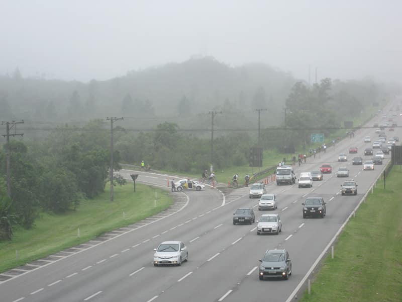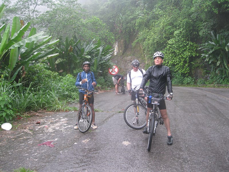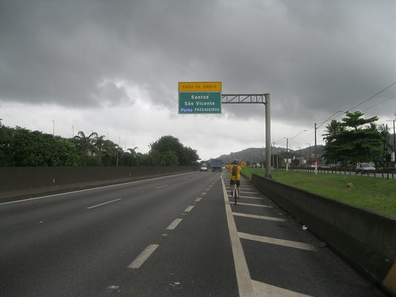 Com muita chuva e neblina descemos devagar, nas partes mais críticas da chegada no litoral algumas viaturas garantiam a segurança dos ciclistas e por volta de 16:00 estavamos chegando em Cubatão. Seguimos para Santos para encontrar a Van com carreta que contratamos para nos pegar as 16:00!!!